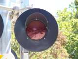 uses these too. This kind of LED is known to burn out quickly. Sometimes, up to 12 of the LED's on the LED board can be burnt out, as shown below on the Garland Prairie Rd crossing. It was believed before that GS didn't make frames, but GS frames have indeed been found in Michigan City, IN, on the Amtrak line and most likely, other crossings along the same line in Michigan have them too. These LEDs usually come in Safetran Light Frames, but have been known to show up in Harmon & WCH Light frames as well. The sidelights on these can come in either a red or white LED sidelight. This kind of light comes in 12" and 8" form. The 8" design has not been seen on any crossings so far. General Signals 12" LEDs have 255 LEDs, and runs on 8.5 to 16 volts D.C. or 8.5 to 11.5 volts A.C. General Signals 8" LEDs have 210 LEDs, and runs on 8 to 16 volts D.C. or 8.5 to 11.5 volts A.C. Both LEDs claim to have 100,000 hours of life, although I'd dispute that to maybe 10,000 to 20,000 hours. The