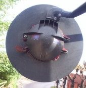 The principle of the light is the same as with any other lights, except that the visor comes as a tube protuding from the light and the background, having the lens attached on the end. The sidelights are also located on the rear side of the housing.
