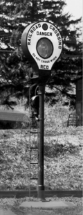 Eventually the disc wayside signal would be phased out in the 1910s and 1920s, but found new use in the form of a railroad crossing signal. First introduced in 1910, the Hall disc crossing signal consisted of a red disc, a red light for use at night, and an automatic bell.