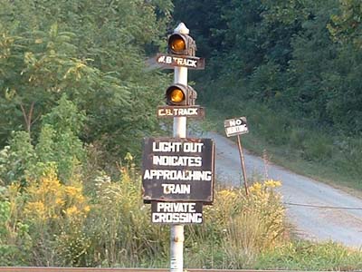 Not much is known about these signals. The light would light upwhen a train wasn't around. It would go off when a train was approaching. The major problem was that the light would burn out, forcing people to stop, which of course, people never do, except for railfans, so that proved to be it's downfall, although with L.E.D. technology of today, these could make a comeback?