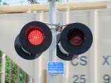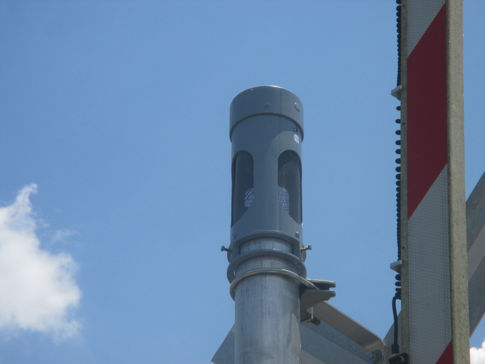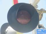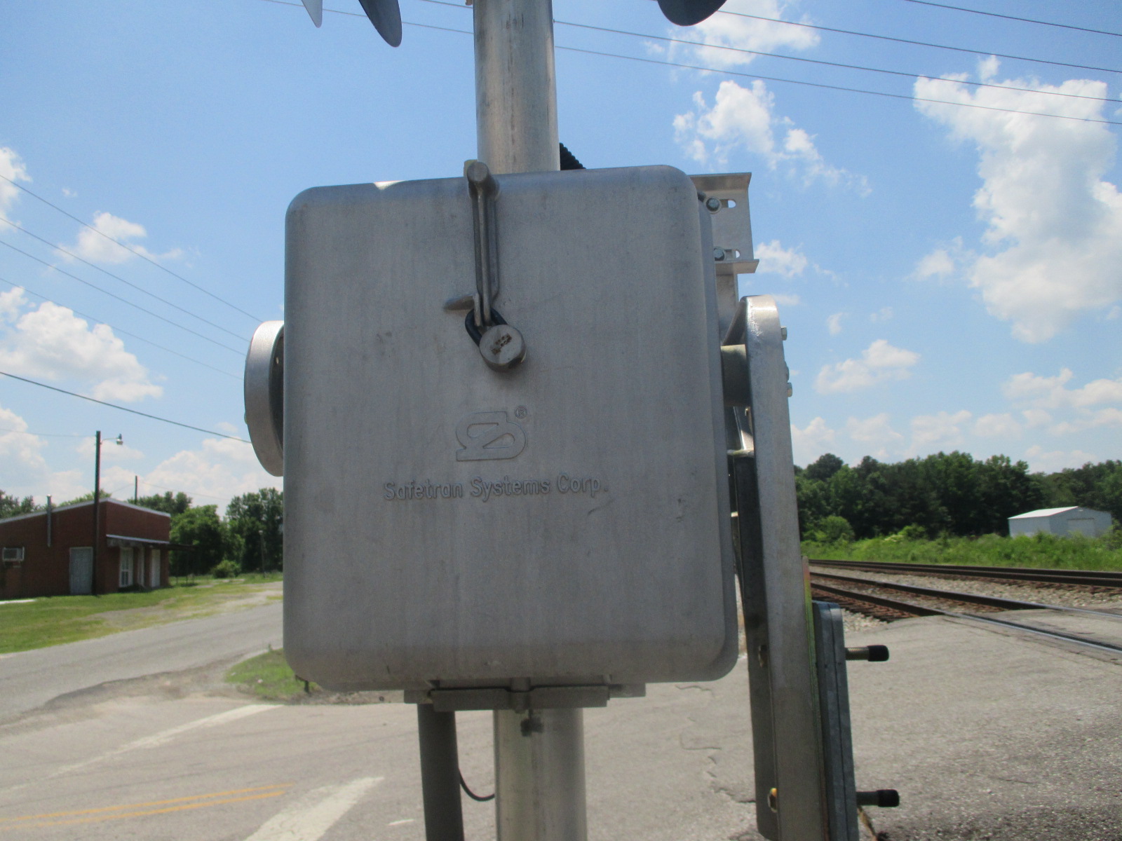 The bell at this crossing is a Safetran Type-2 electronic bell. |
