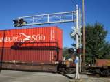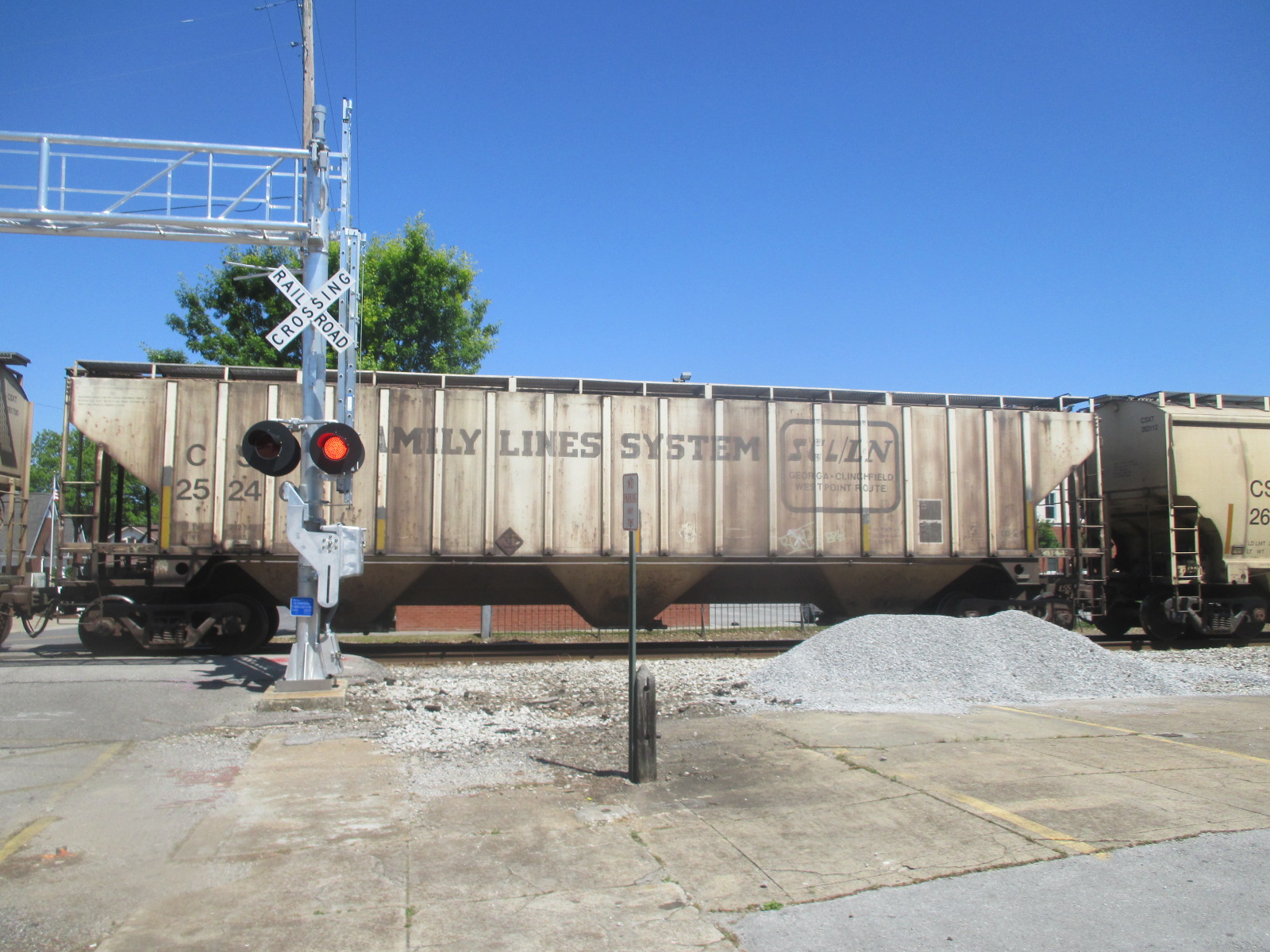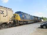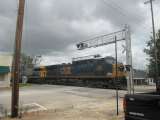 An NS Dash-9 leads a CSX grain train through the crossing! |