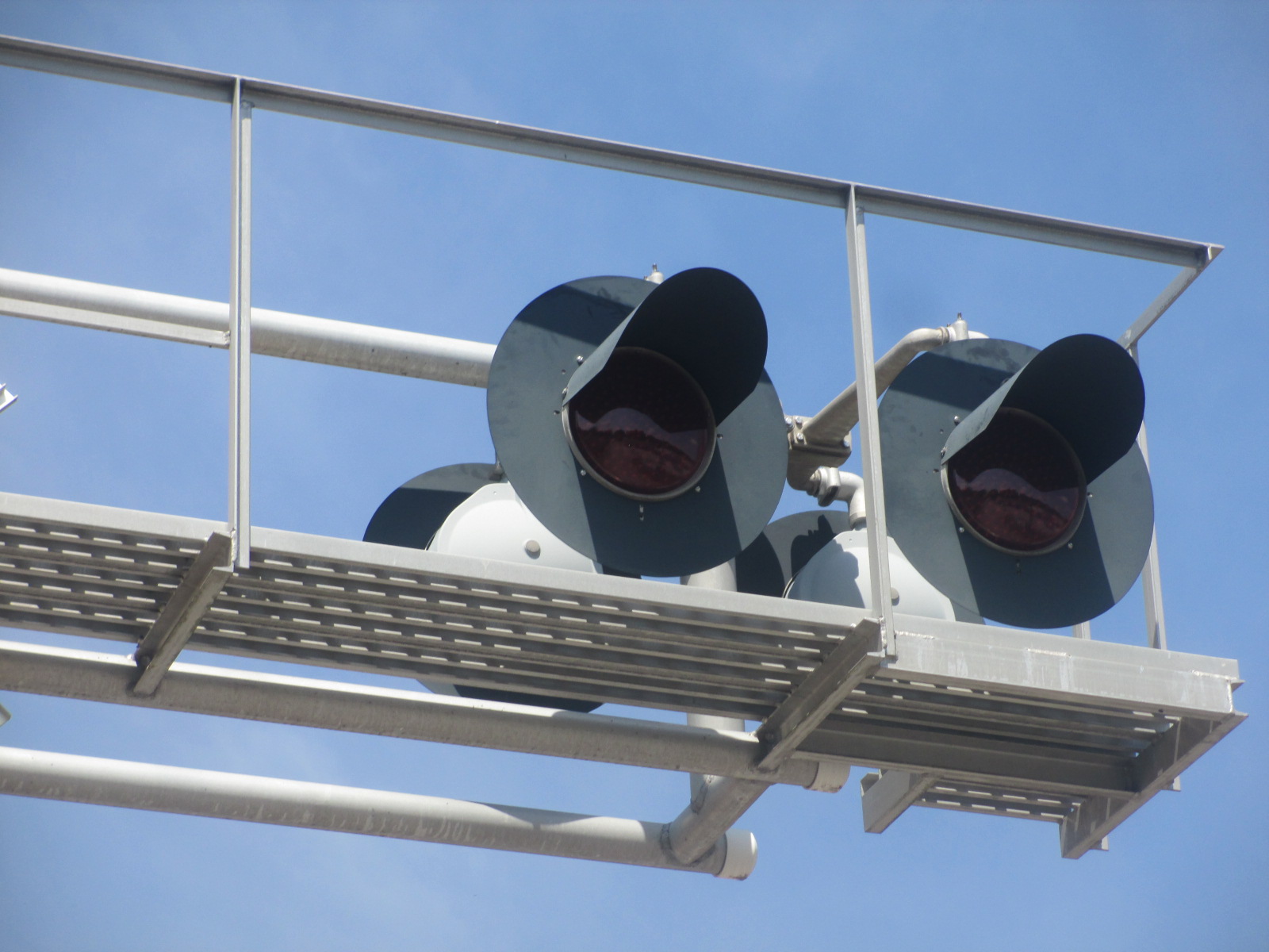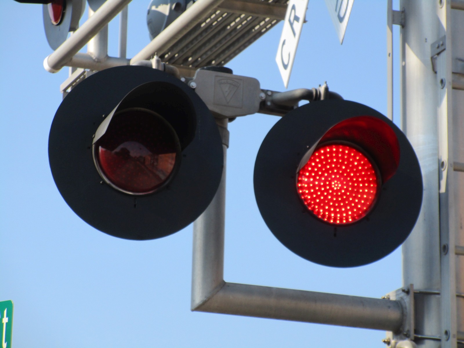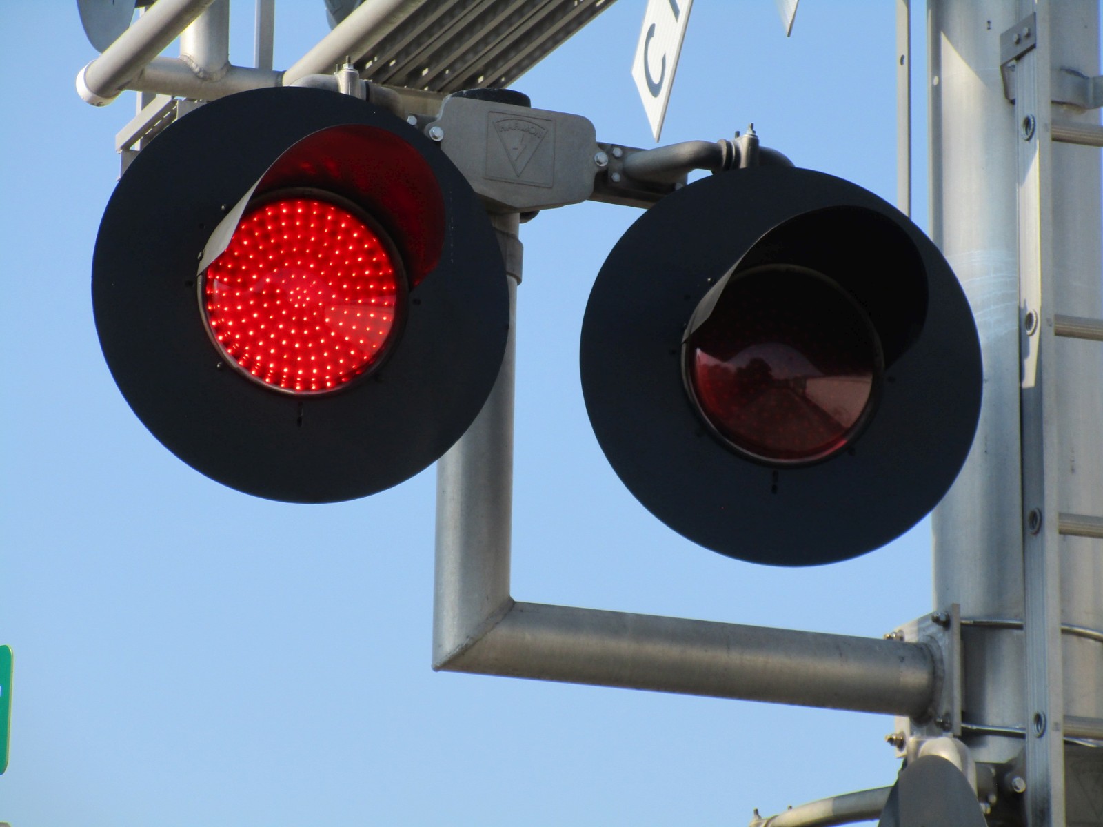 The first signal here has had its gate arm replaced and all of the gate lights on it are now NEG LED gate lights. |