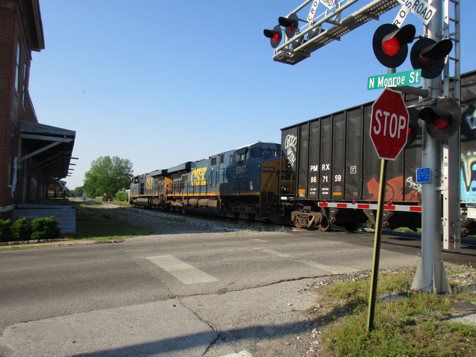 CSX Q688 heads north through the crossing with a pair of ES40DCs for power. |