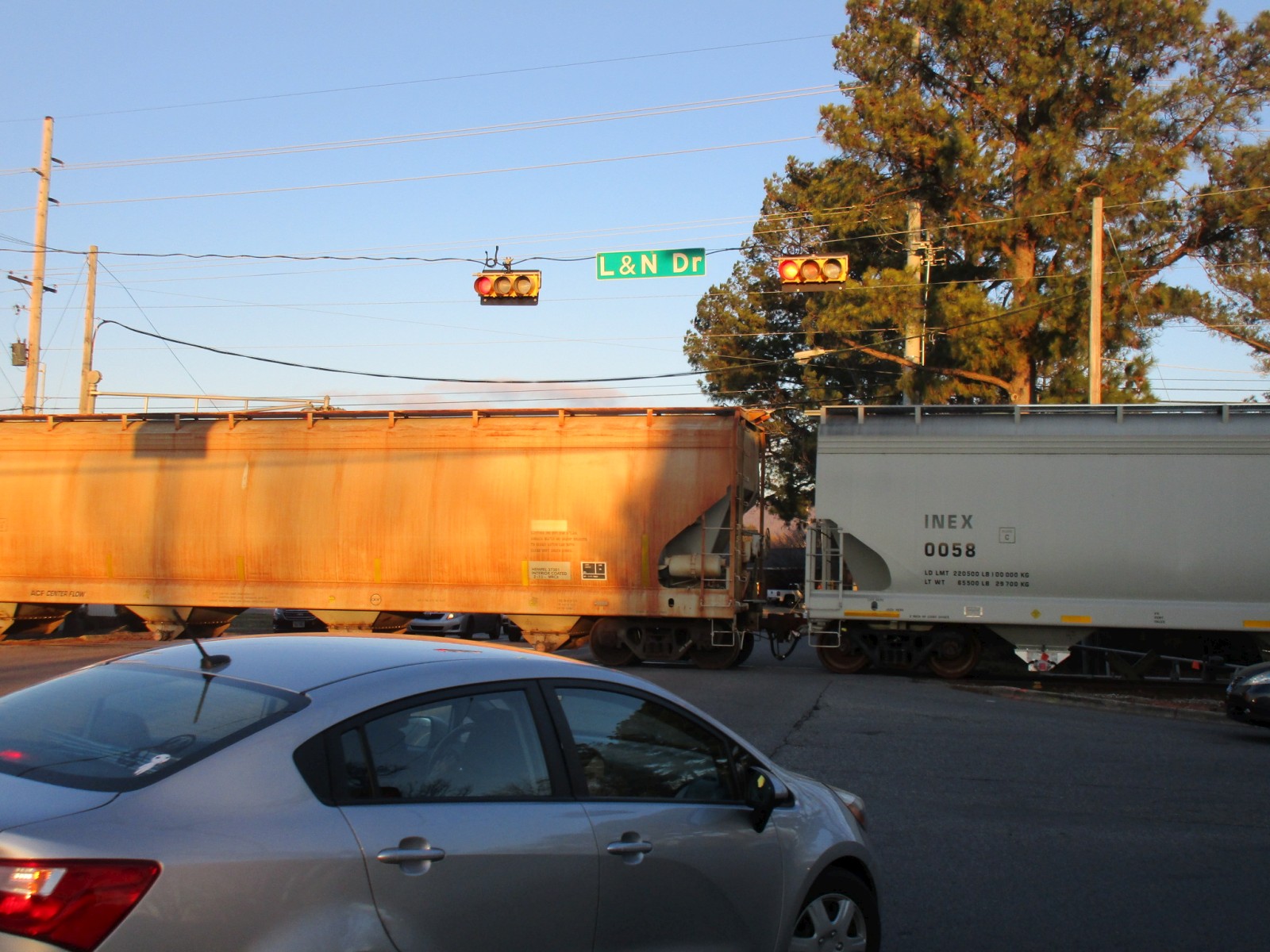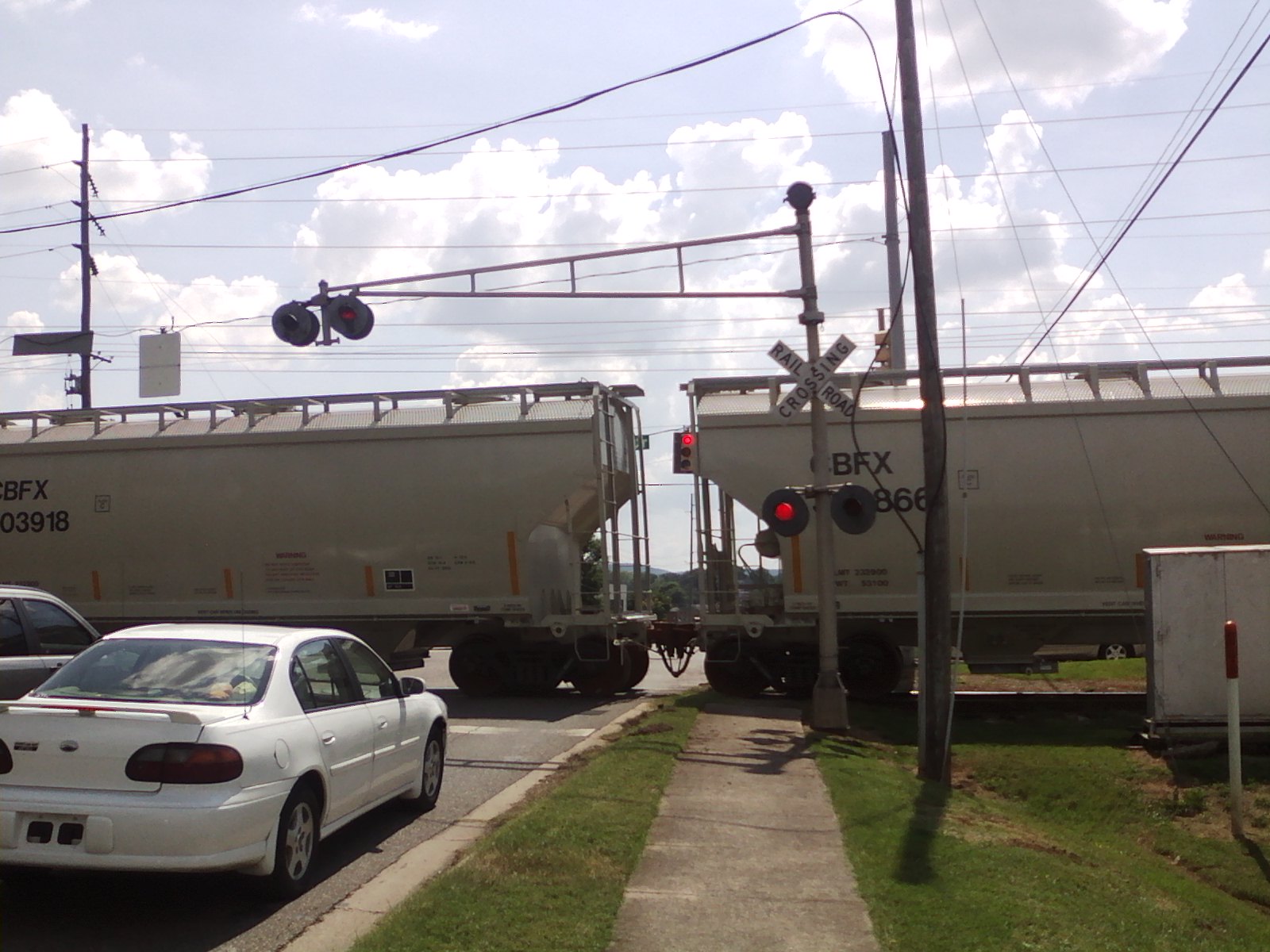 HMCR 8539 pulls two cover hoppers south through the crossing! |