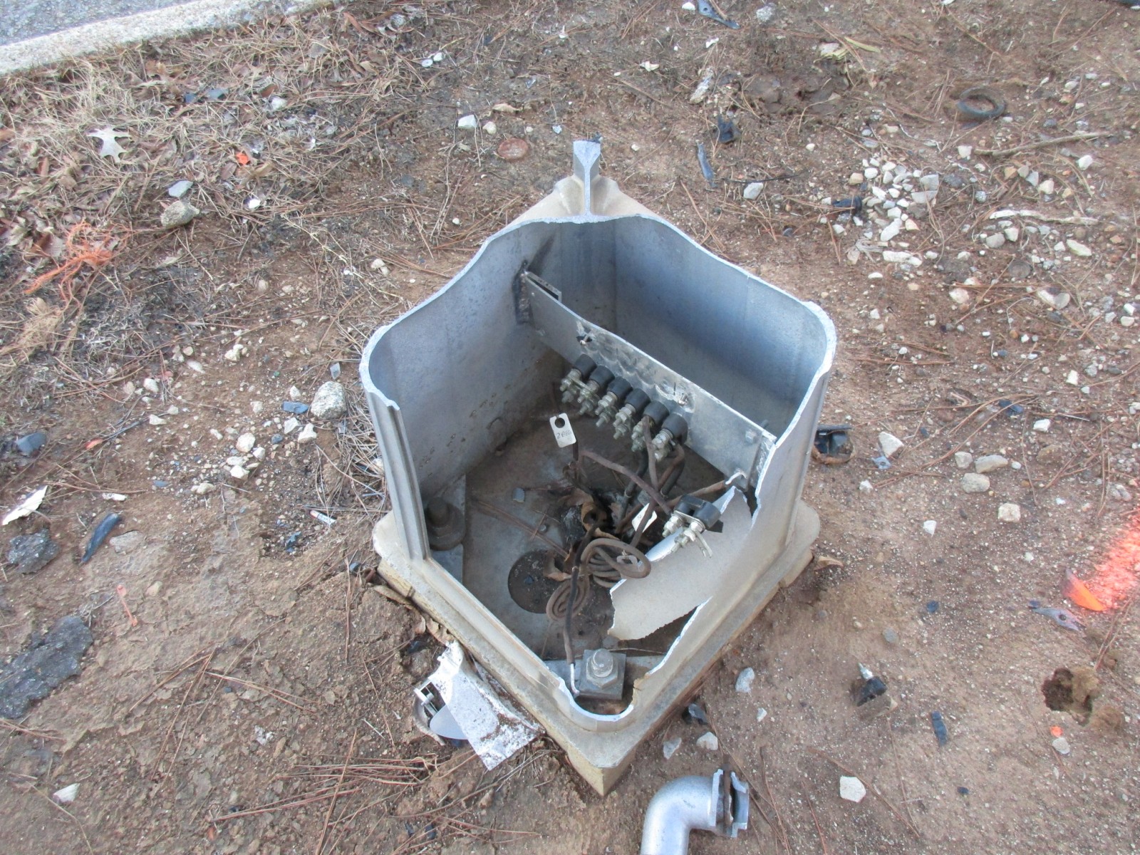 The remains of the old signal lay next to the crossing. |