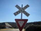 This crossbuck is slightly bent. |