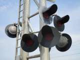 The overhead lights on this signal are a mix of early Federal Signal 12x24 inch lights and Modern Industries 12x24 inch lights! |