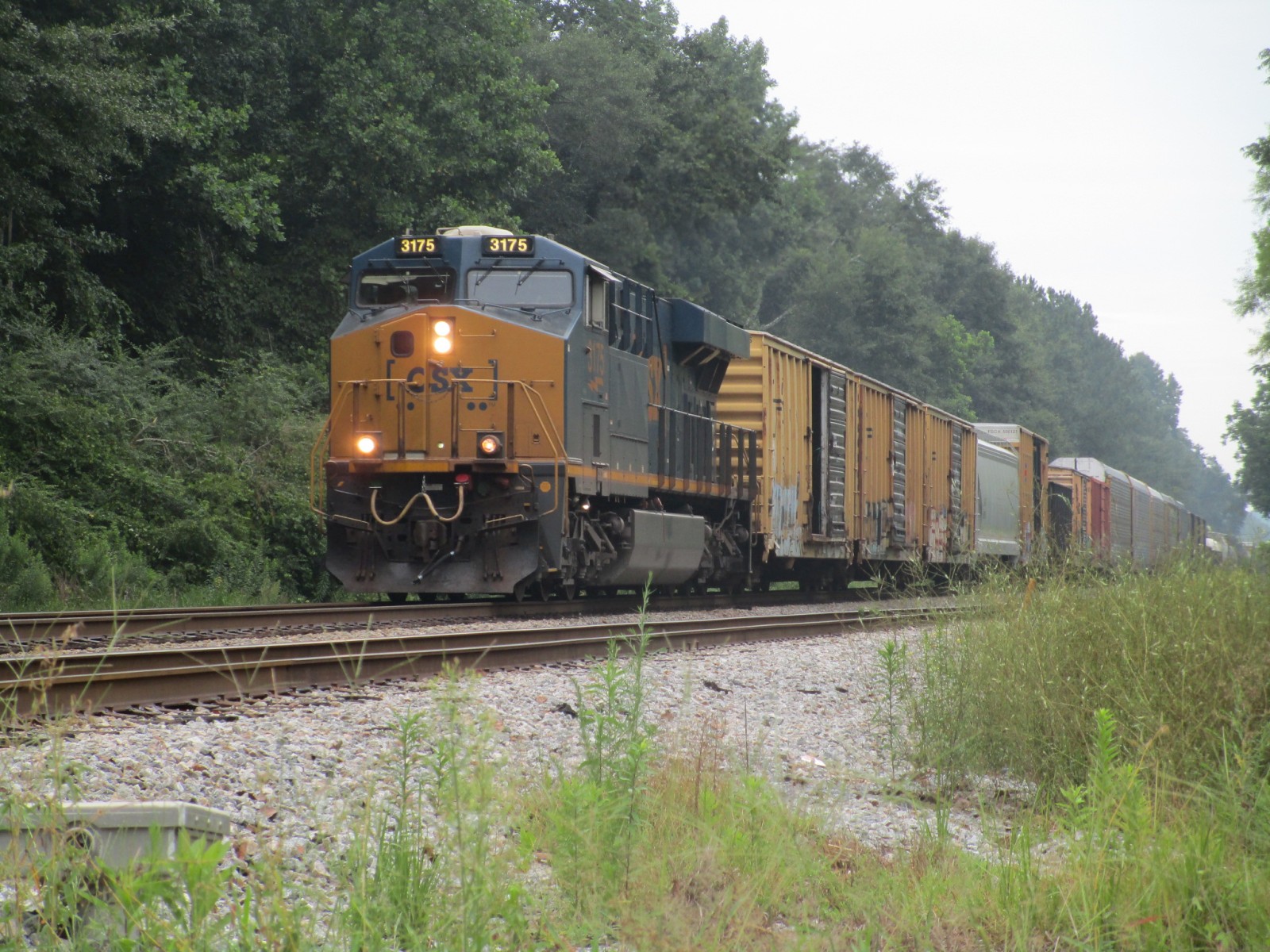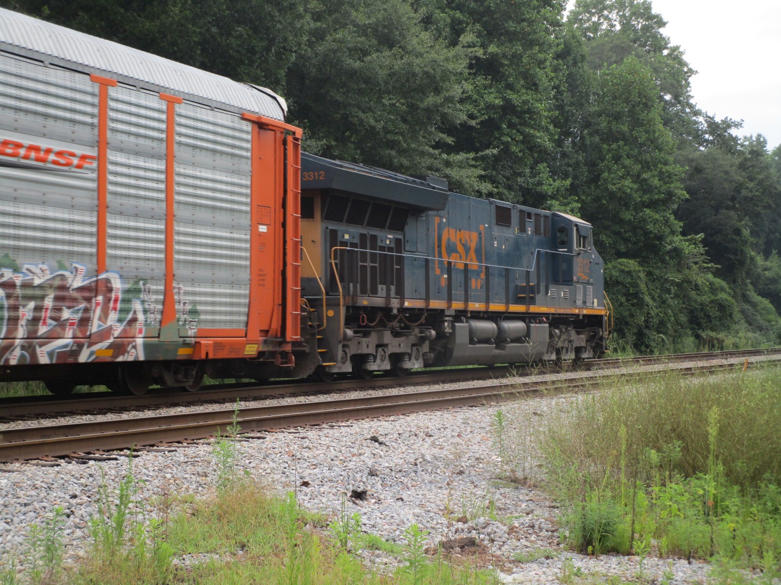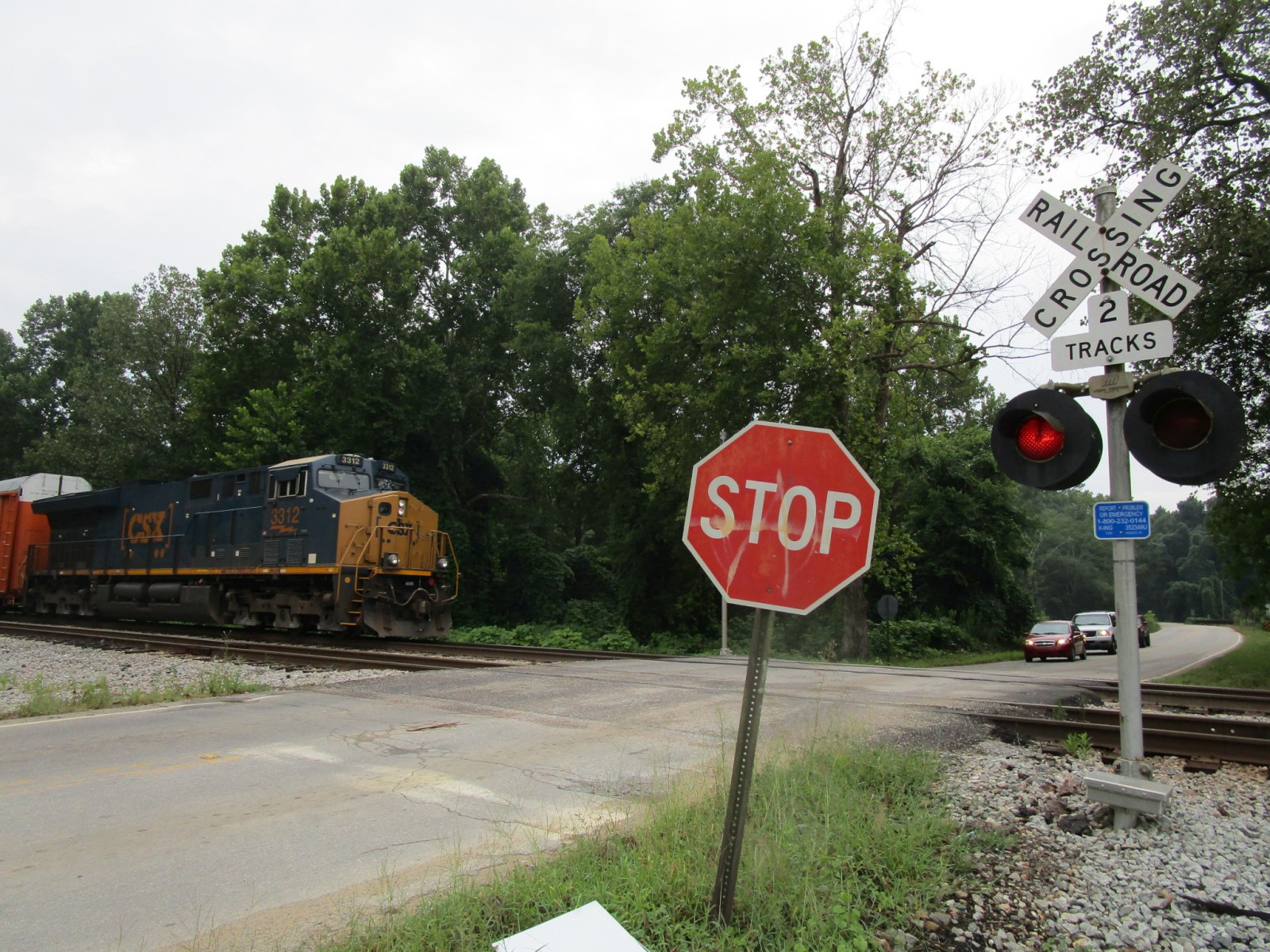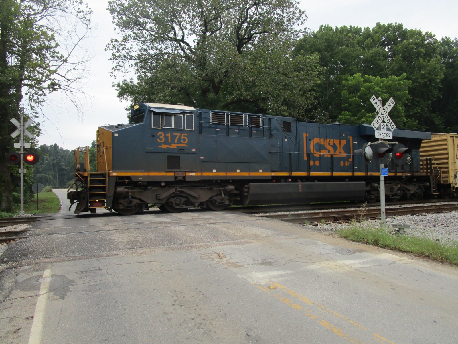CSX Q523 comes south through the crossing with an ES44AH pulling on the head-end. |