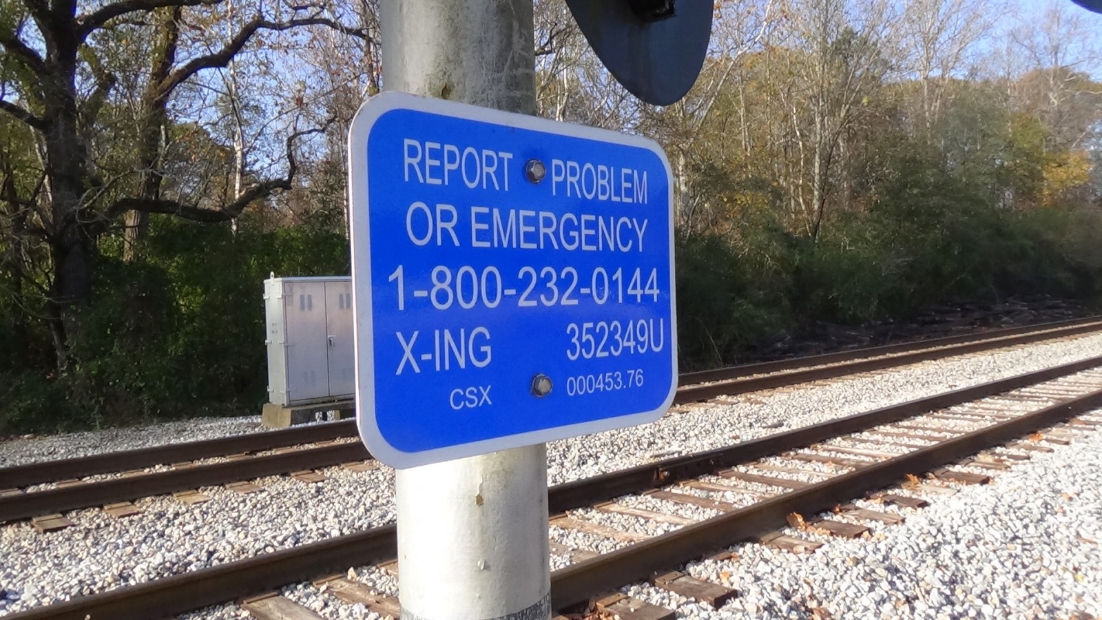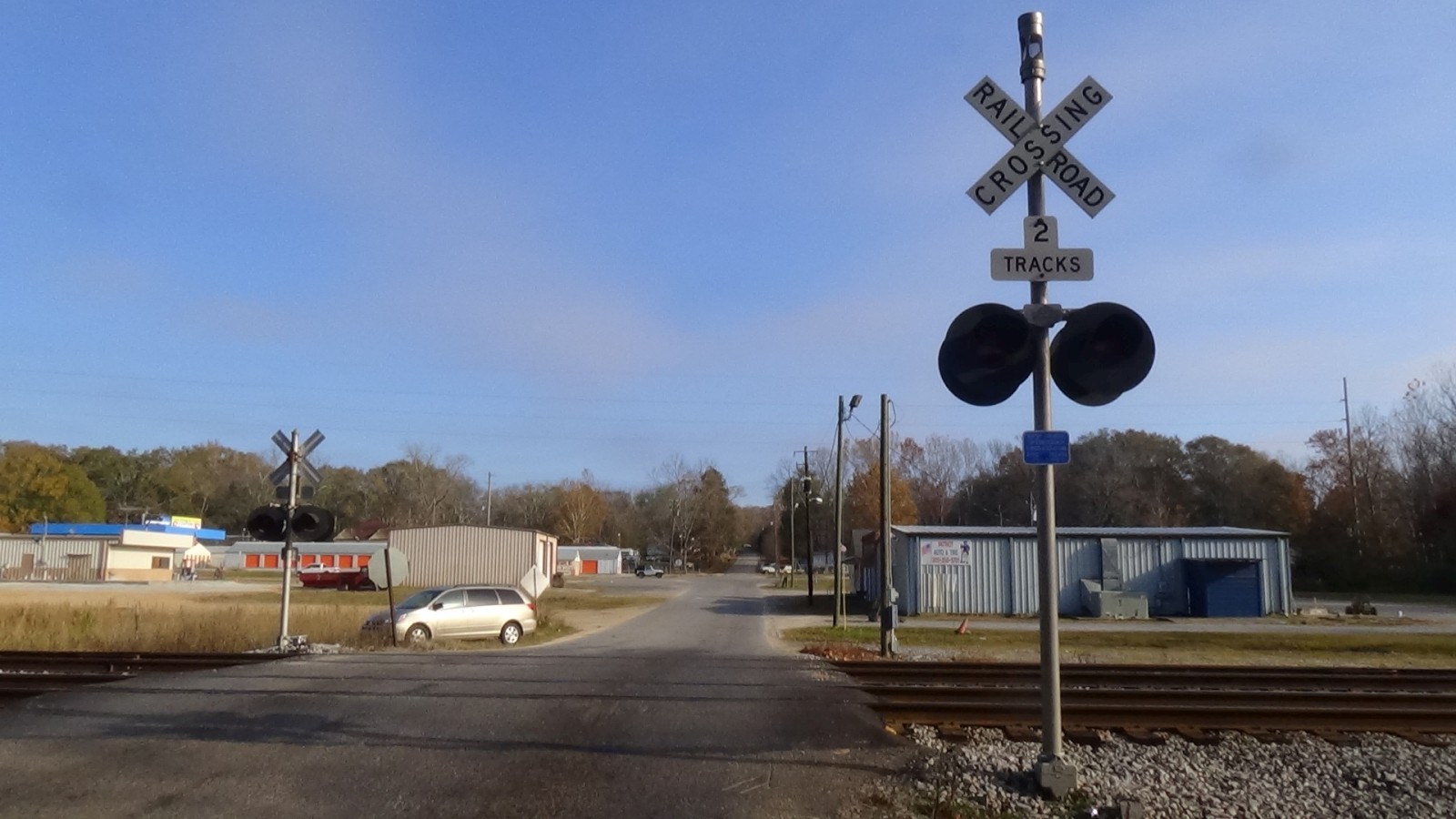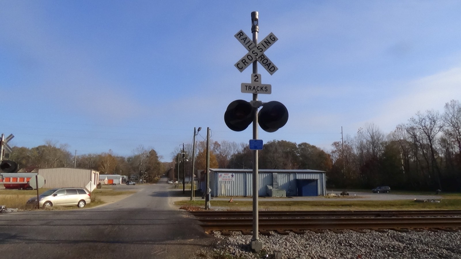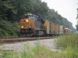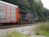CSX Q523 comes south through the crossing with an ES44AH pulling on the head-end. |