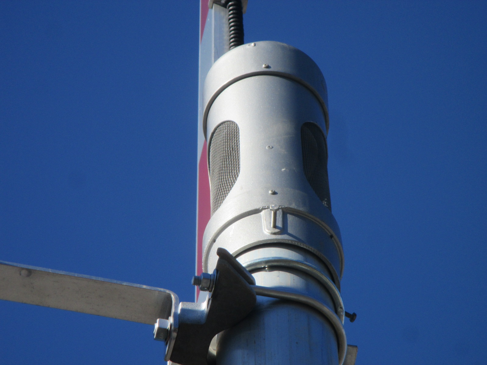 This signal has Safetran 12x20 inch lights with GE Uniform Look LEDs. |