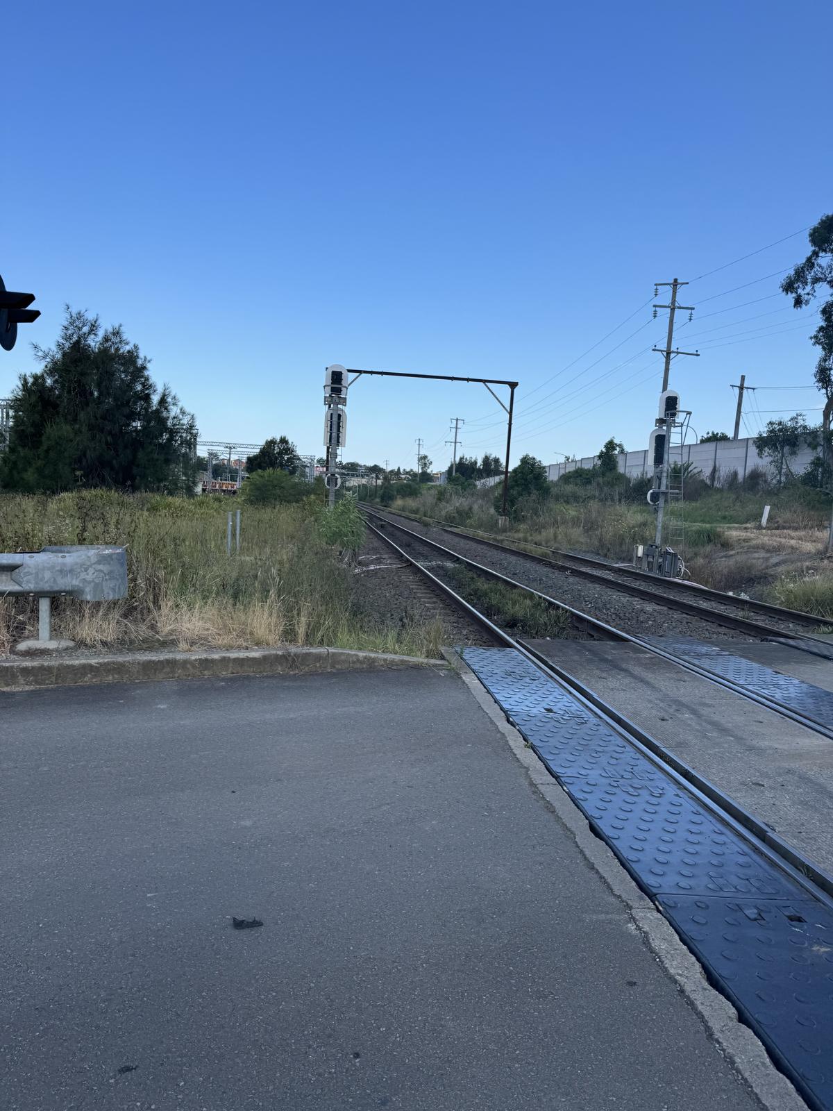 Track view facing southeast towards Carrington Rd. in Marrickville, Penrhyn Rd. in Port Botany, & Pedestrian Crossing in Cowan. | Track view facing northwest towards Pedestrian Crossing in Cowan, Pedestrian Crossing in Yennora, Carrington Rd. in Marrickville, Penrhyn Rd. in Port Botany, Anzac St. in Chullora, Camden Rd. in Douglas Park, Pedestrian Crossing in Springwood, & Garfield Rd. in Riverstone. |