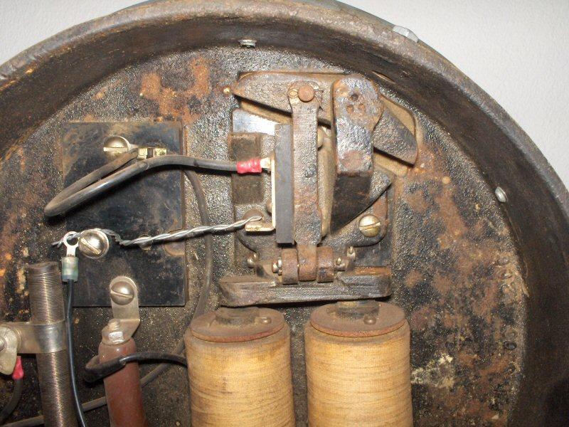 From Patrick: This is my Cast Iron WRRS Model 0222 Xing bell. This is the 3rd WRRS bell that I have aquired. It weighs 62 lbs. when complete with the gong. I replaced the gong from another bell that I have to complete this one. It came to me originally with no gong. I got this bell from the UPRR. I had to make my own contacts to make this bell work. I came to me with a 5 & 3/4" pipe mount. It is missing 3/4 of it's label.