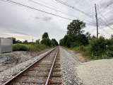 Track view facing west towards Manslick Road. |