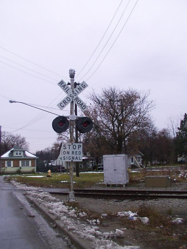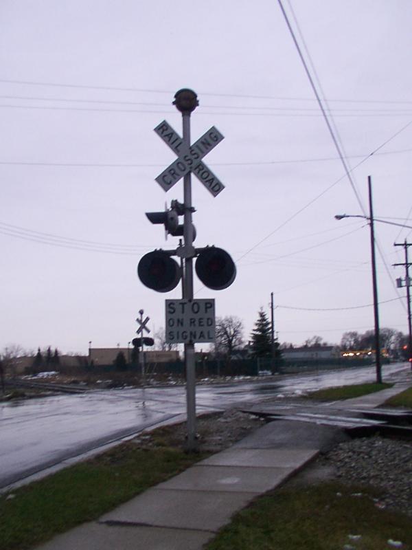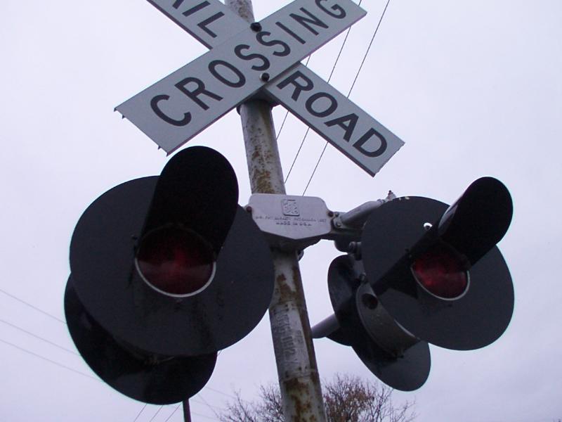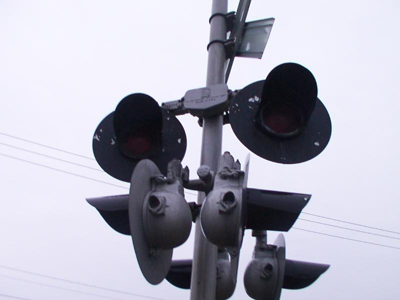 These signals have five pairs of 8" incandescent light frames from WRRS, two WRRS mechanical bells, and the STOP ON RED SIGNAL signs used to be inversed at one point in time. |