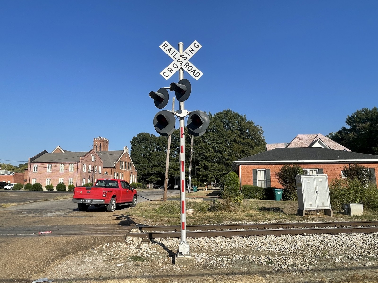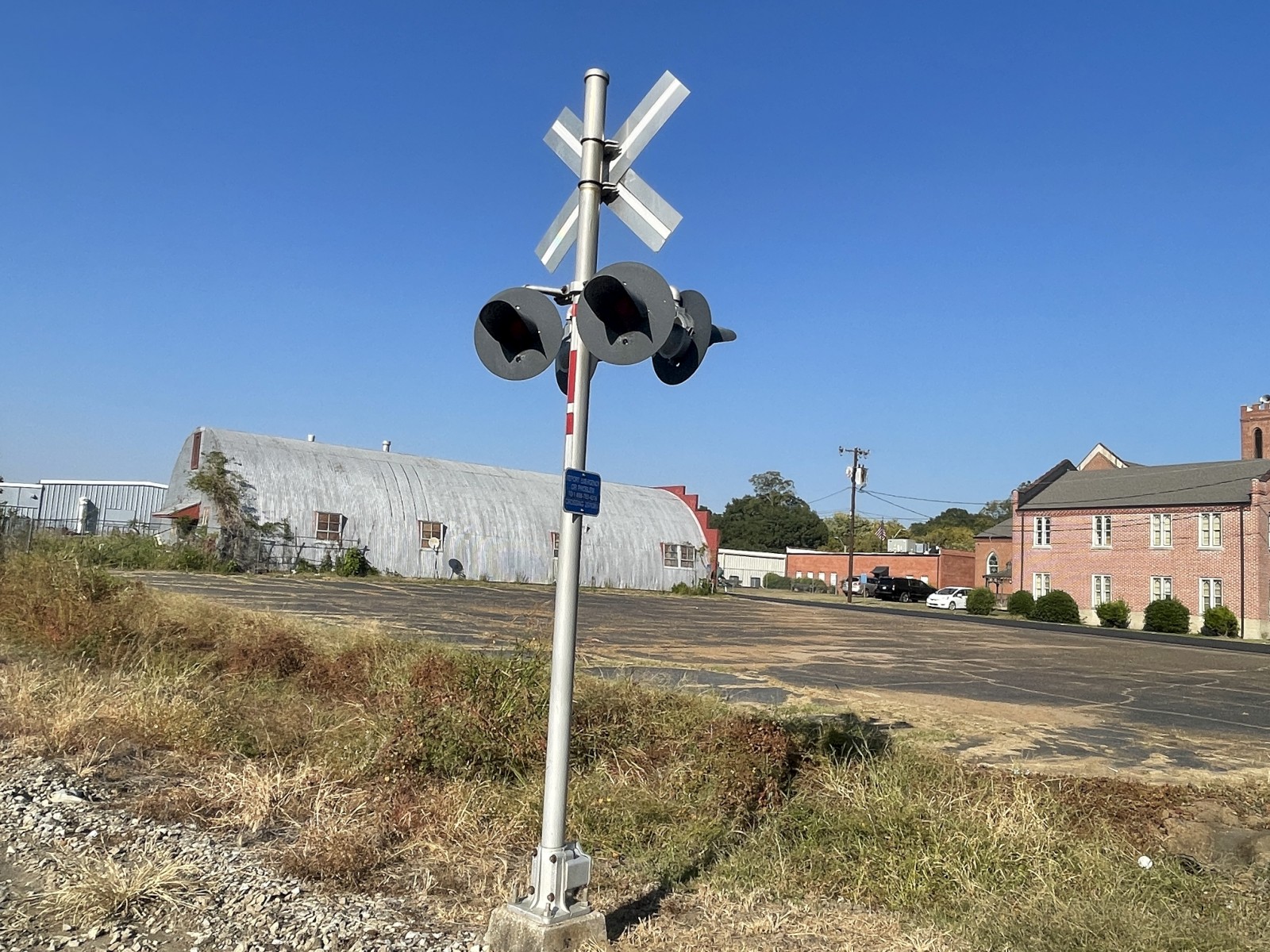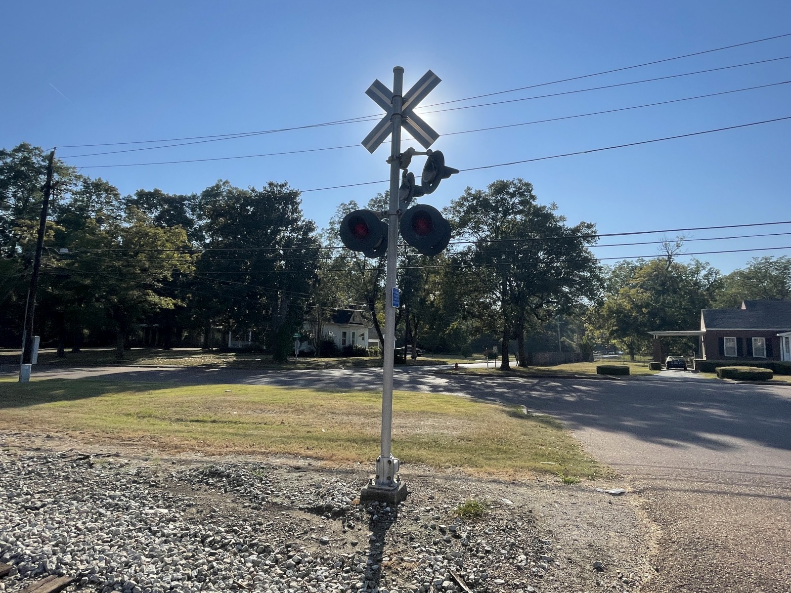 This crossing is located on the Grenada Railroad.