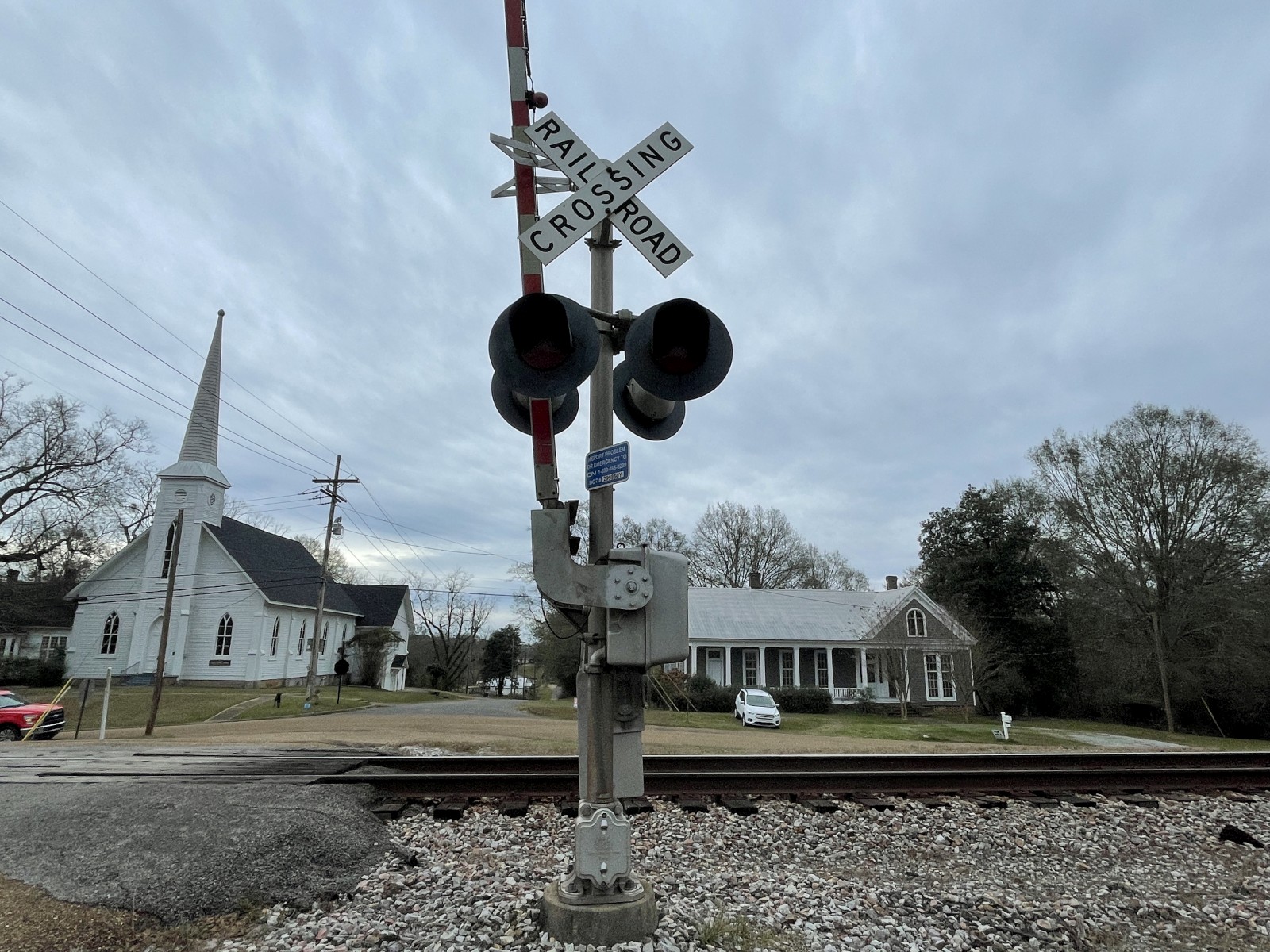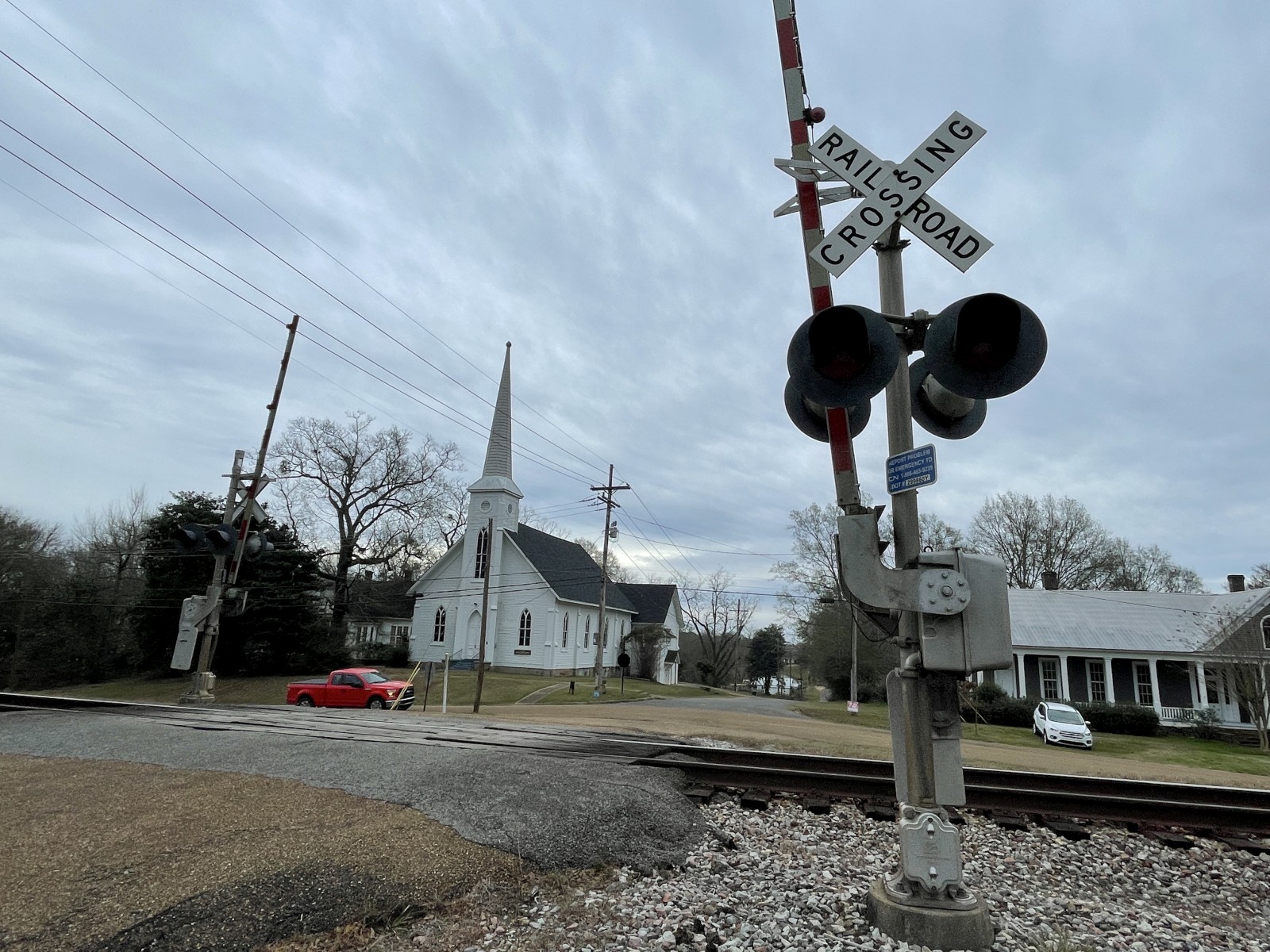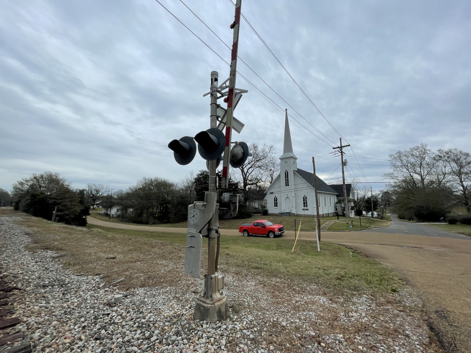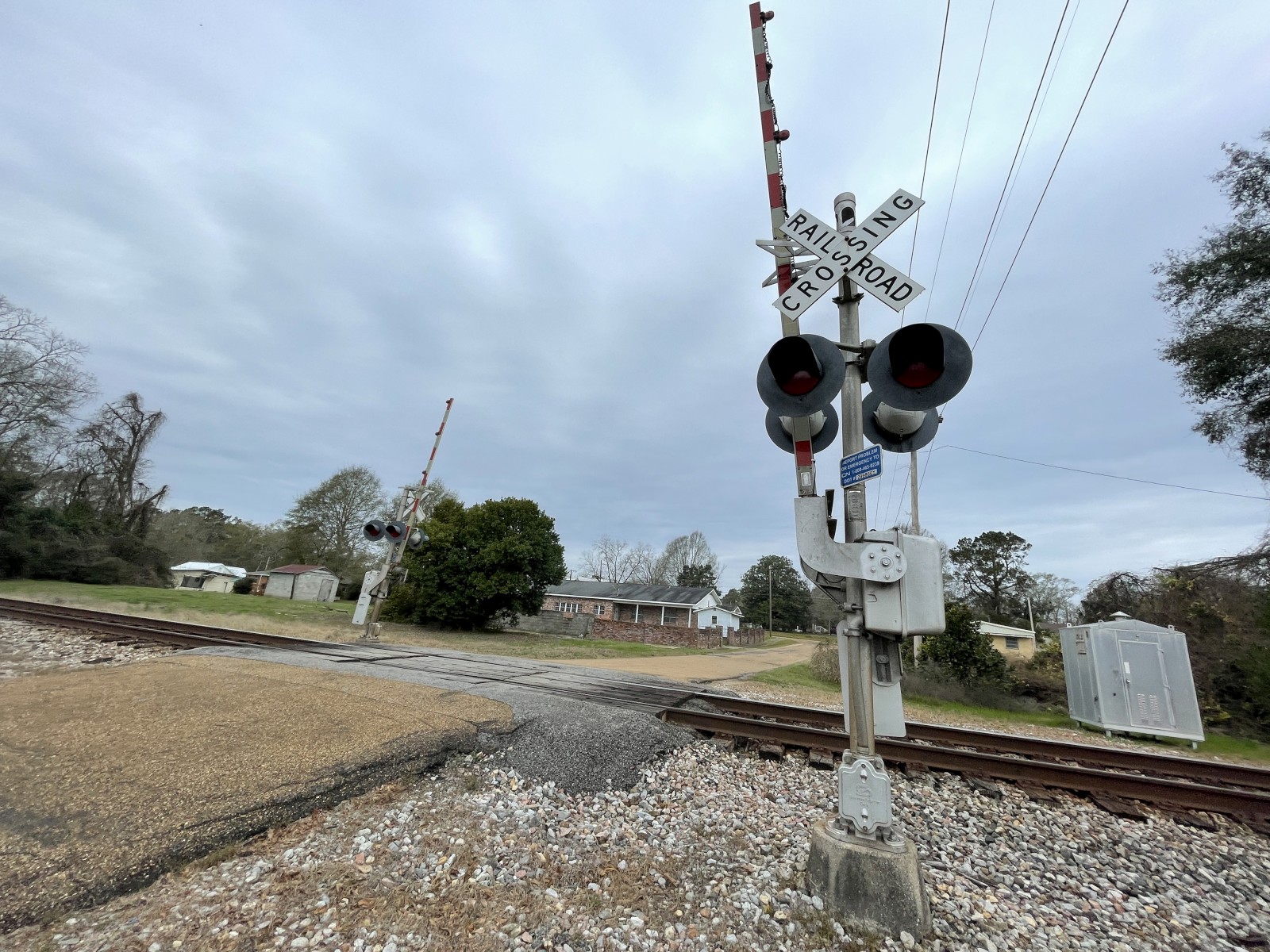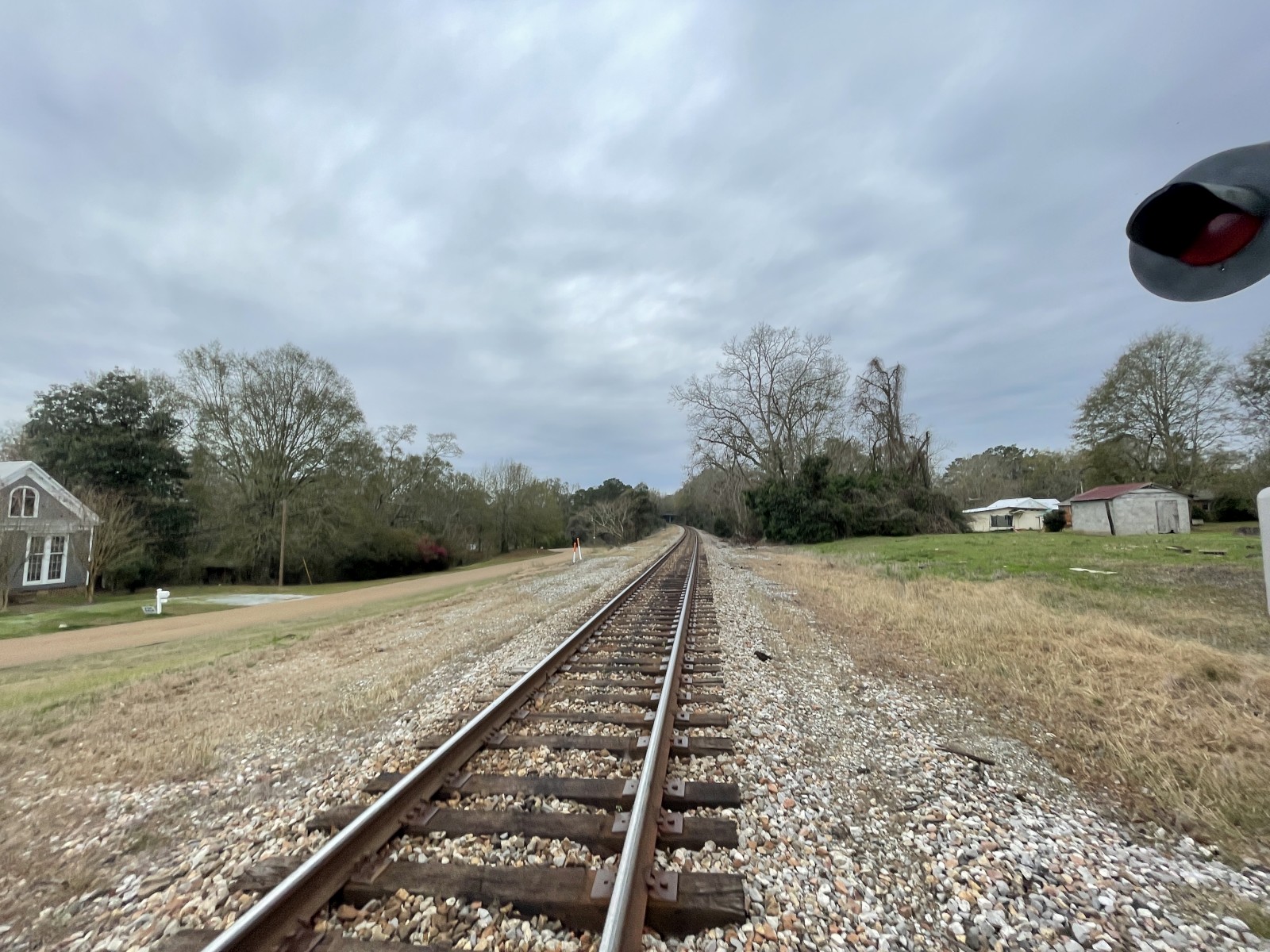 Track view facing south towards Enterprise Street, U.S. Route 51 & MS-550, & Industrial Park Road in Brookhaven. |