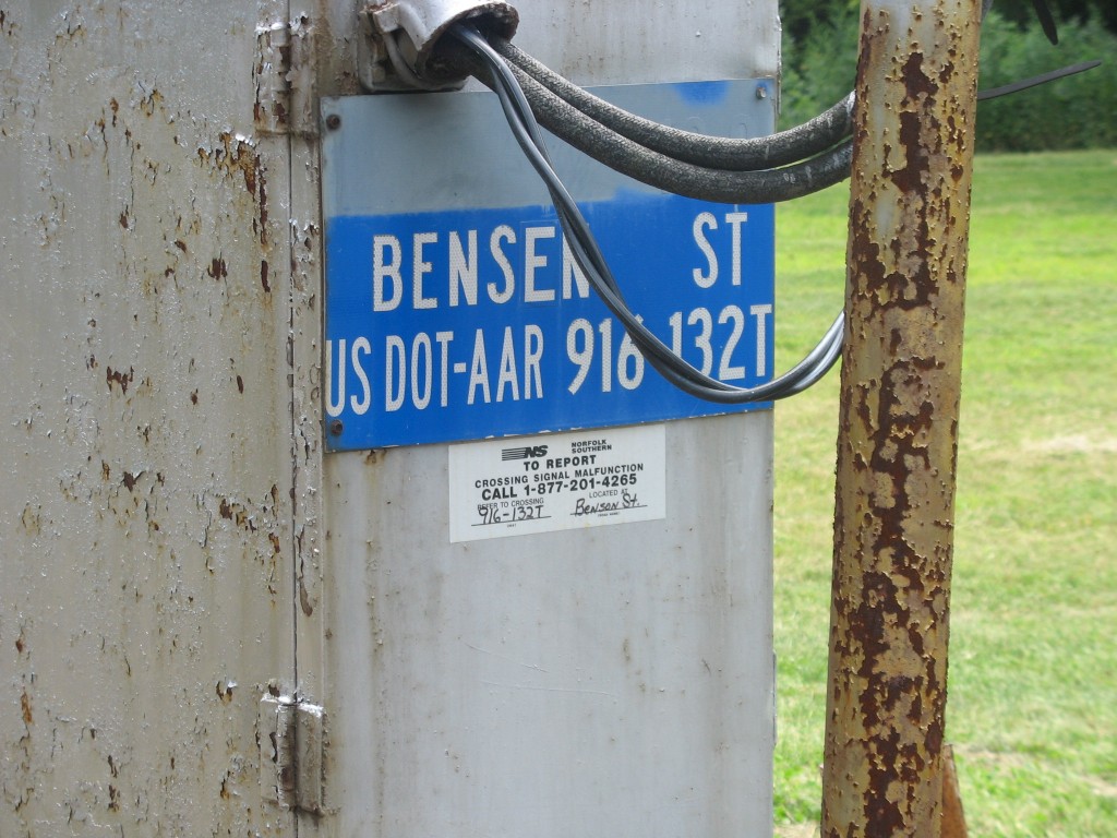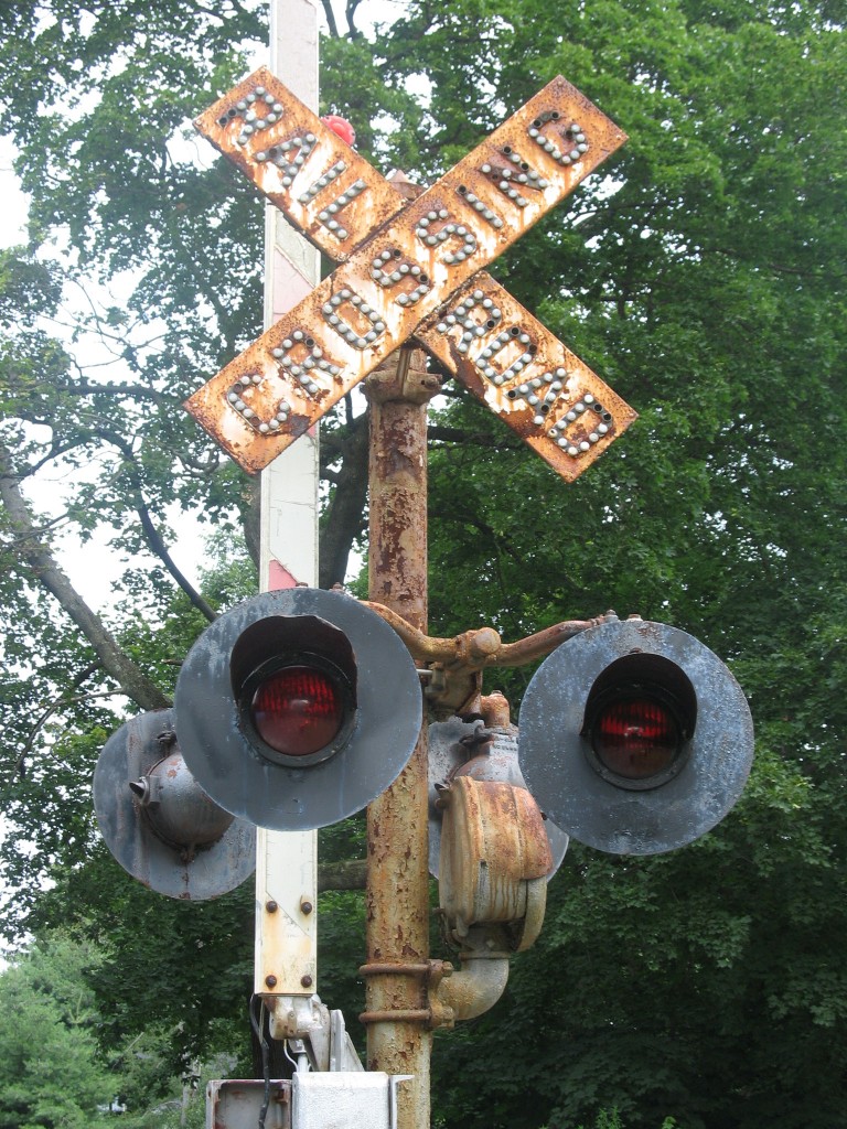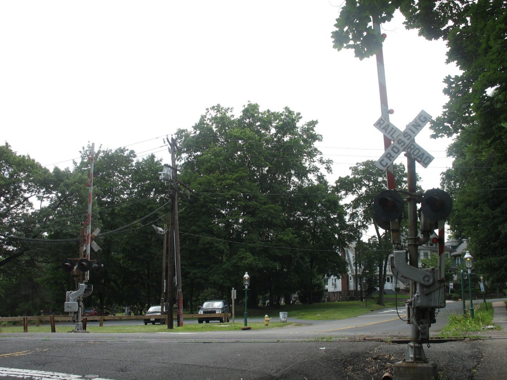 Overview of the crossing from both sides of the crossing. 8" very old WRRS incandescent lights, two cats-eye crossbucks and 2 teardrops can be found here.