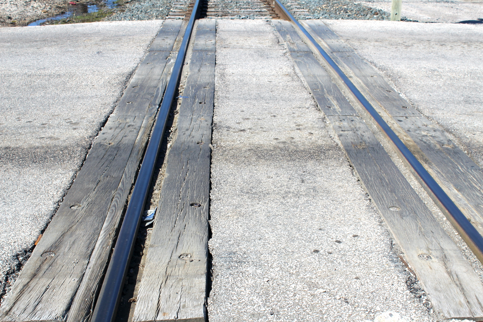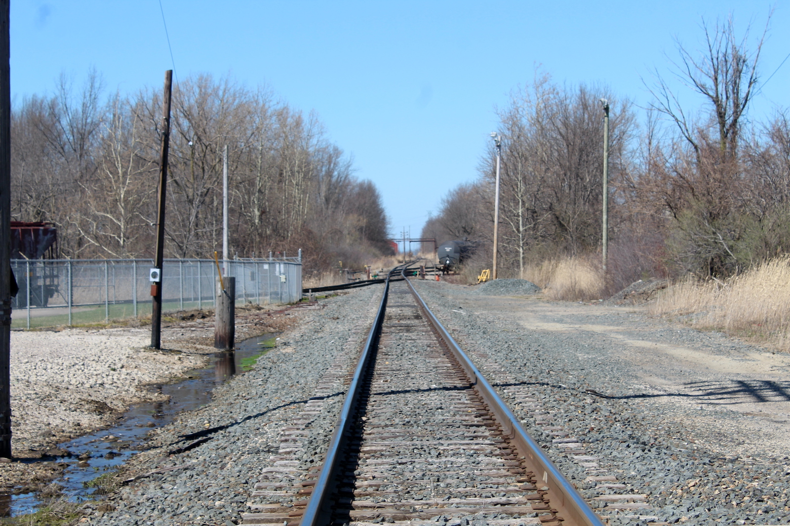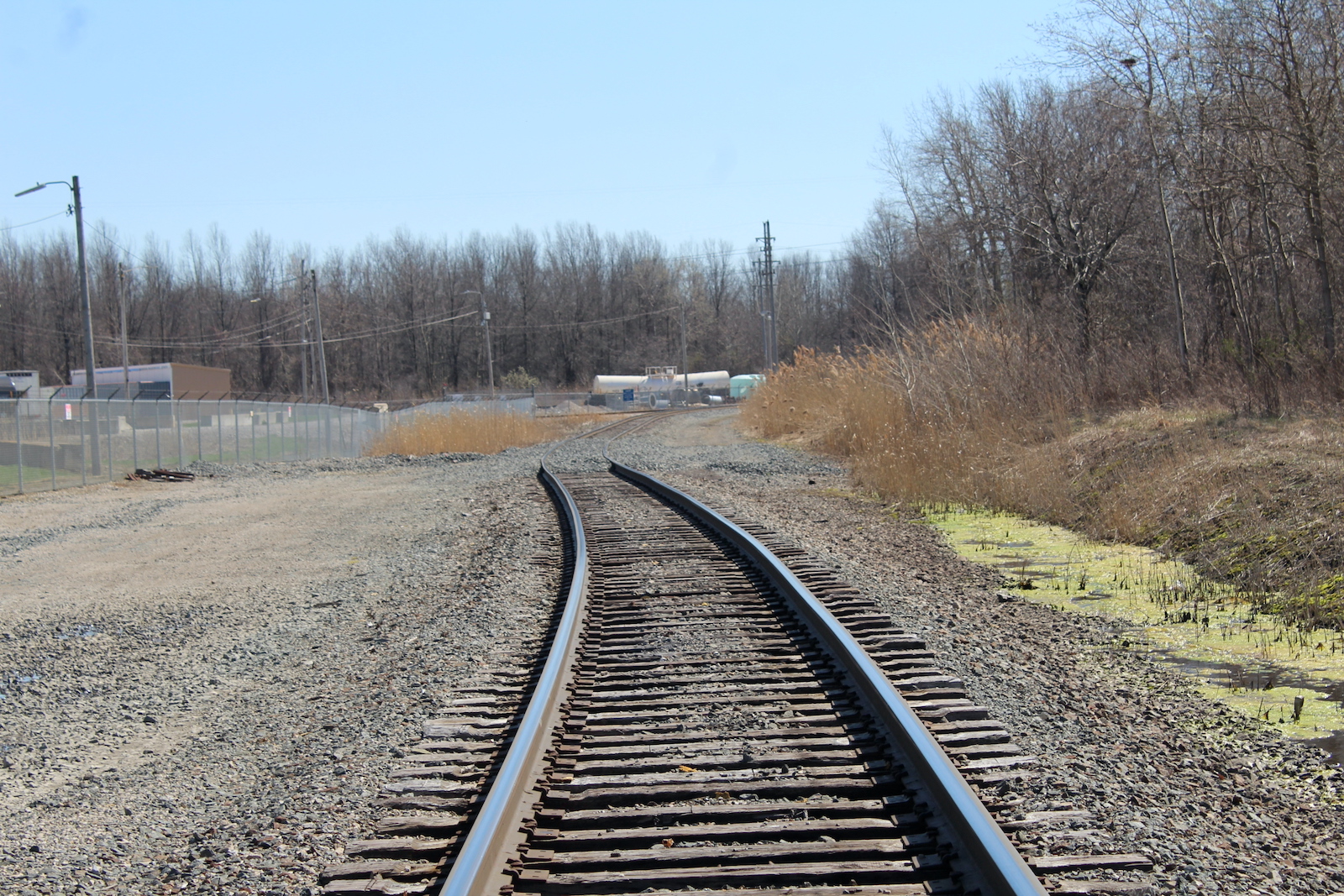 | The grade is wood and asphalt. | Track view facing north towards the plant. | Track view facing south towards the mainline. |