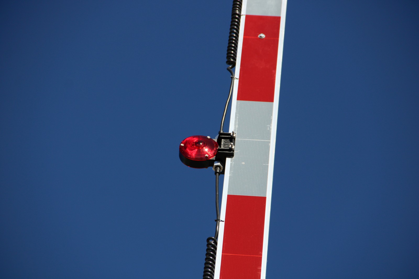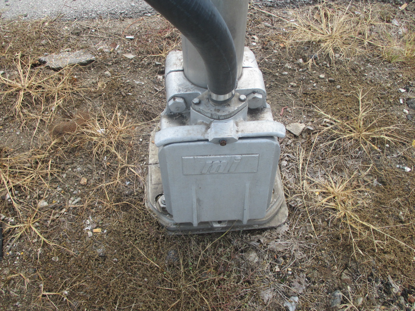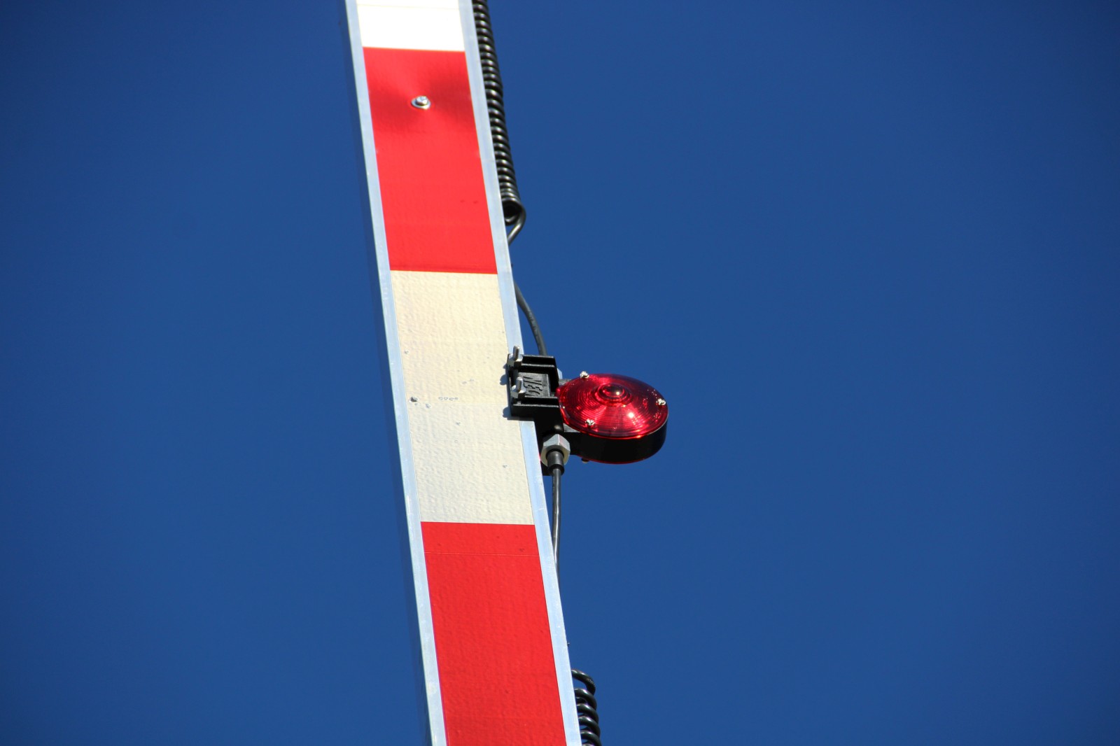 A Modern Industries base supports the mast of a Safetran gate mechanism. |