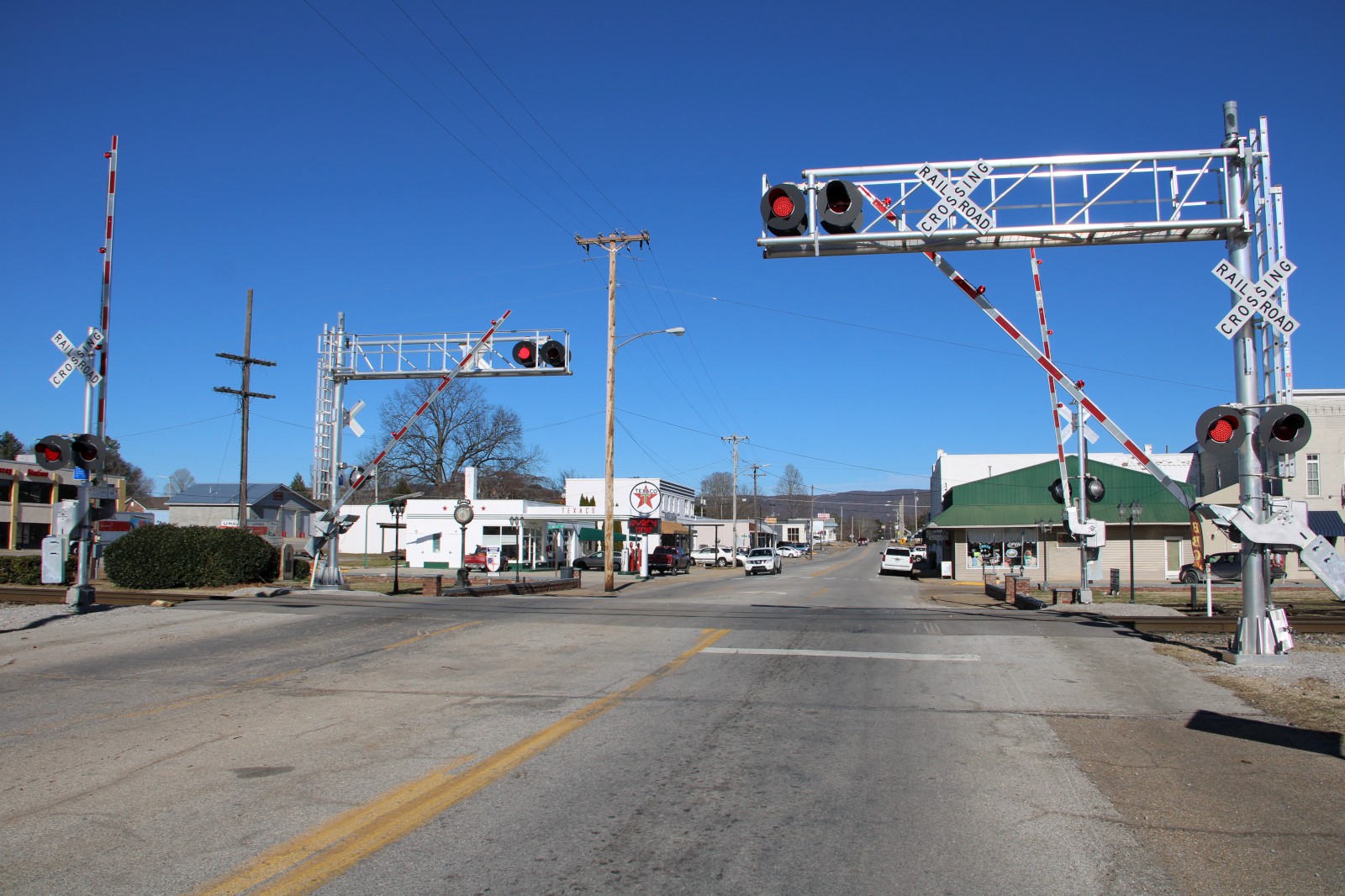 Track views. Picture 31 looks north towards Main Street in Decherd, TN. Picture 32 looks south towards Bookout Road. |