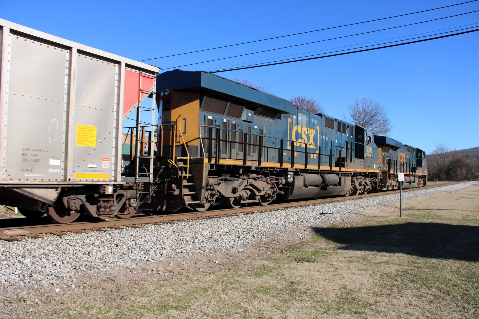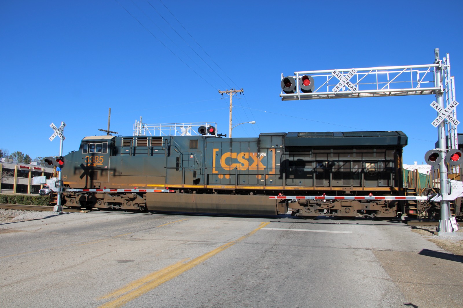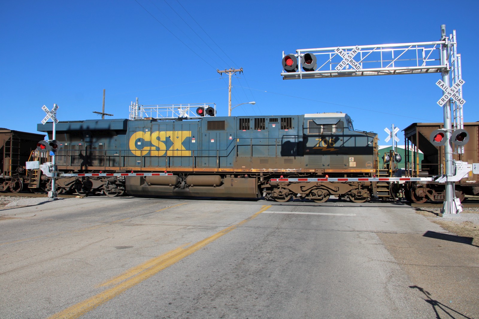 CSX 3229 leads CSX C306 through the crossing! |