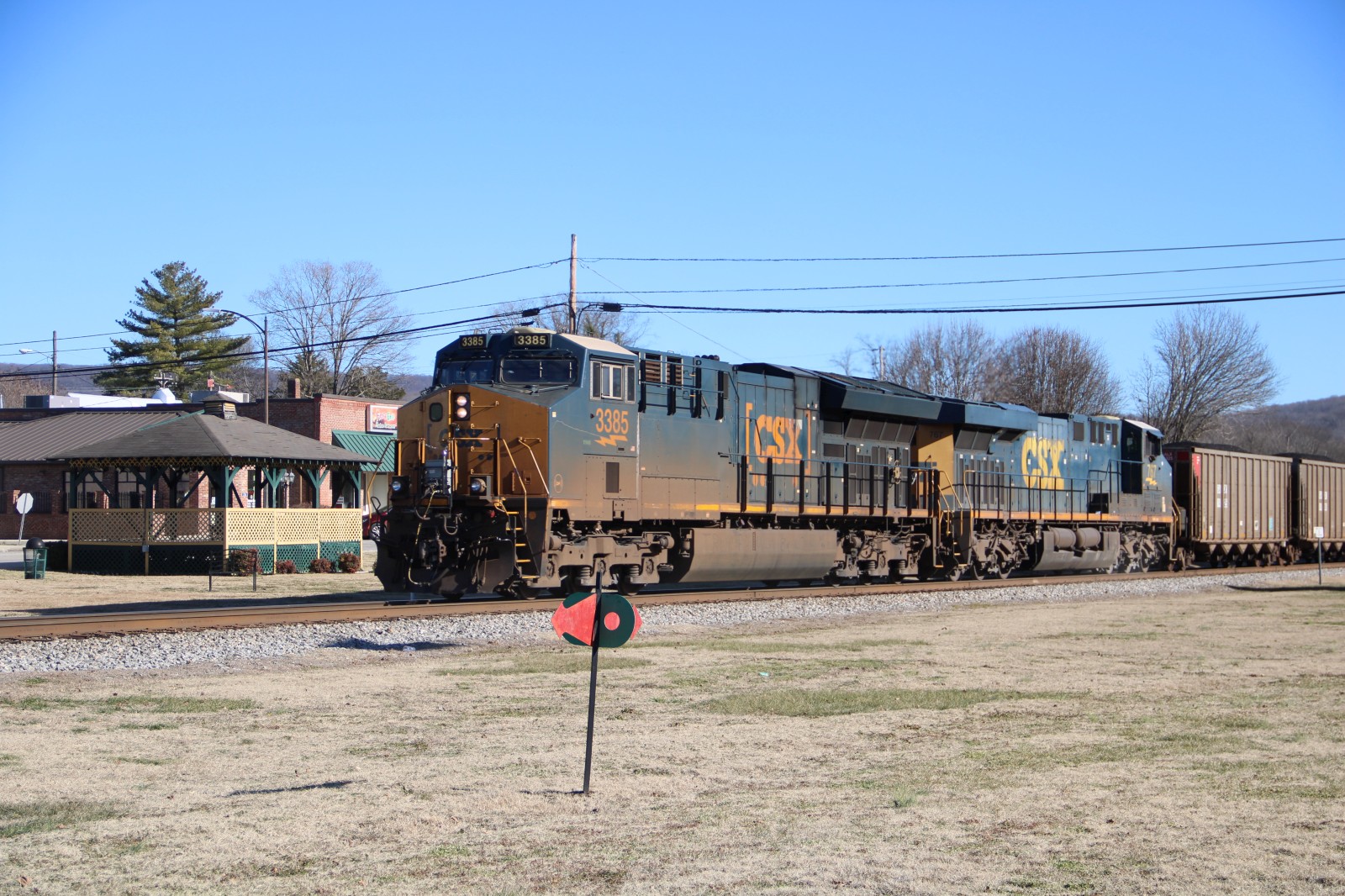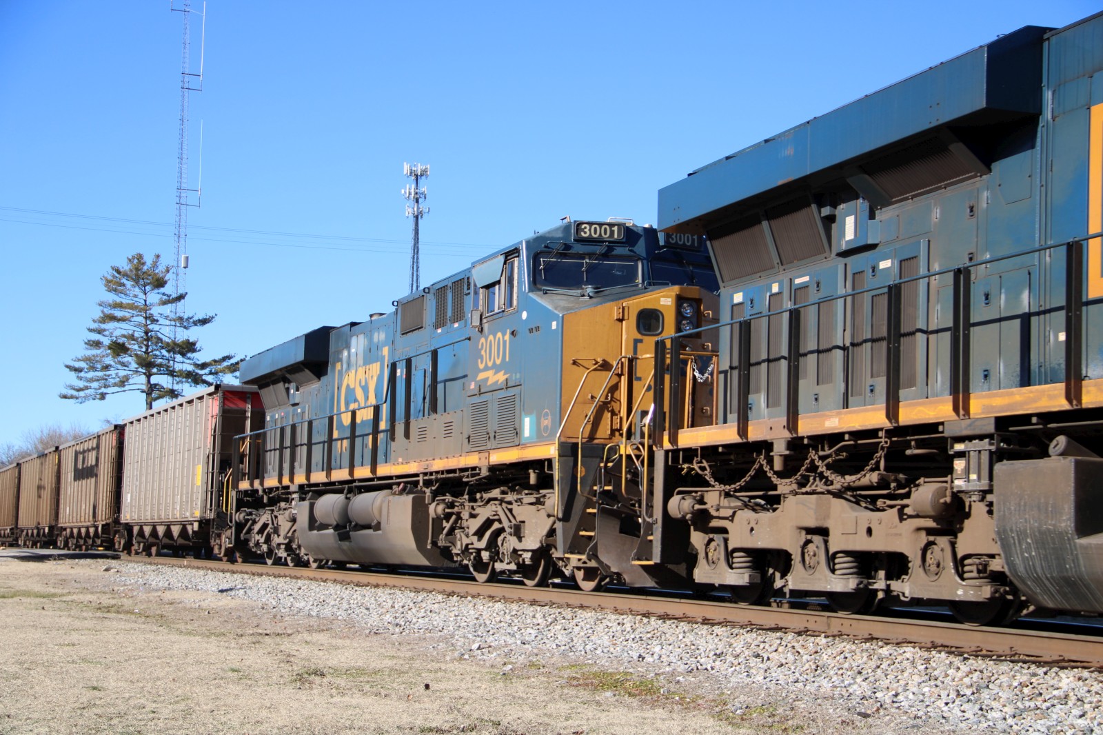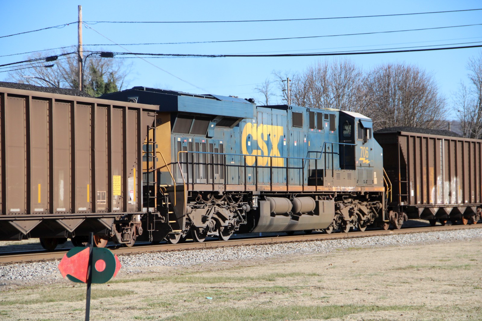 CSX 3229 leads CSX C306 through the crossing! |