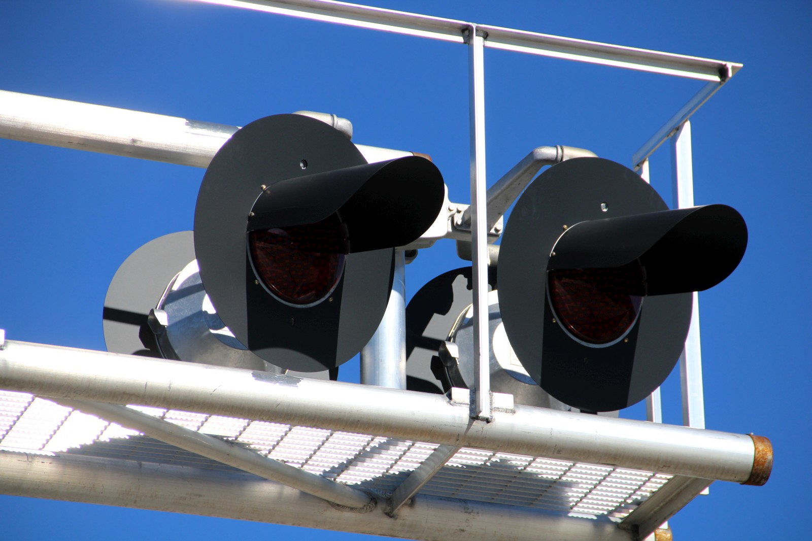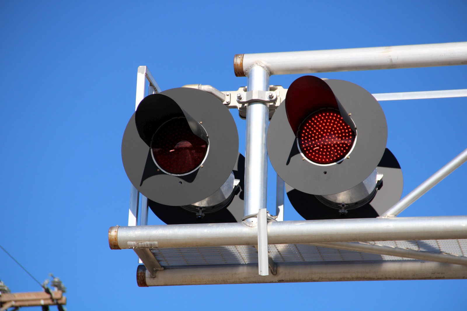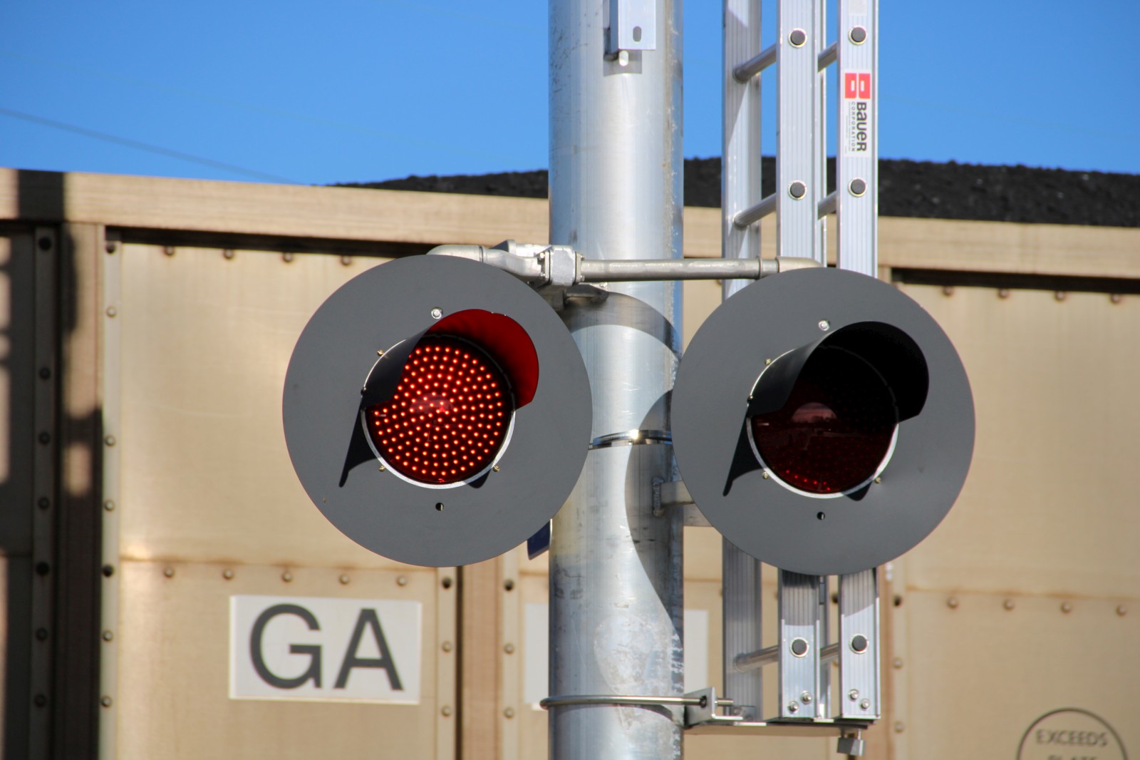 The mast lights are 12x24 inch Safetran lights with Dialight ball LEDs. |