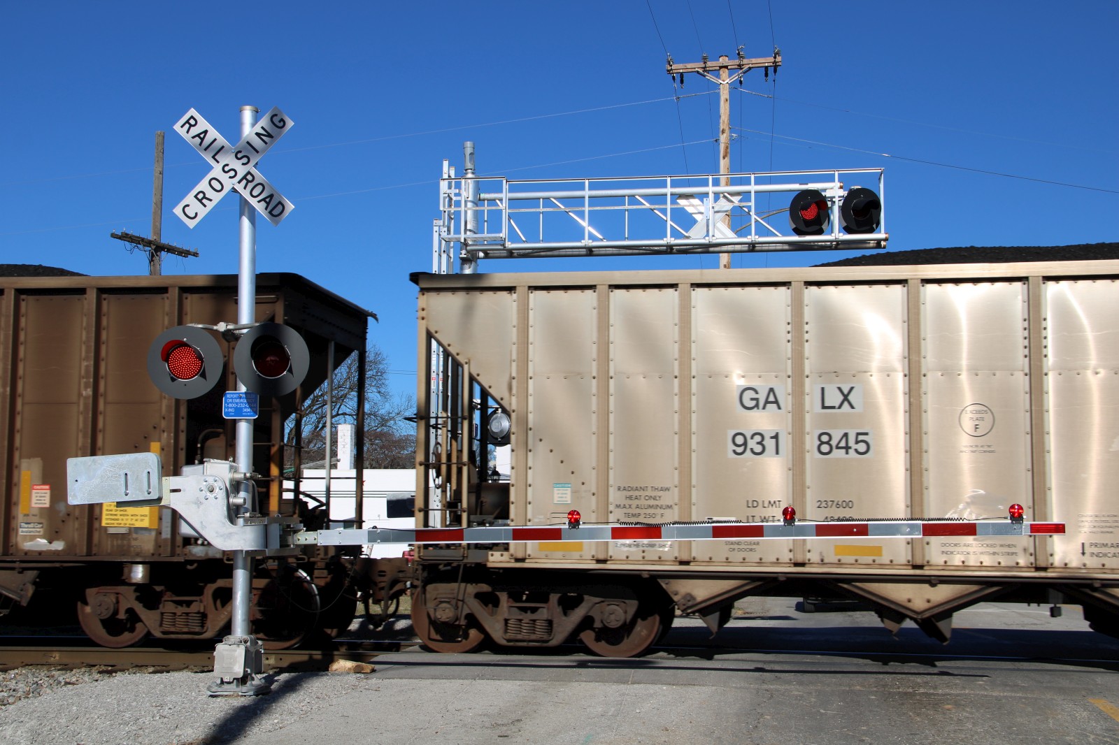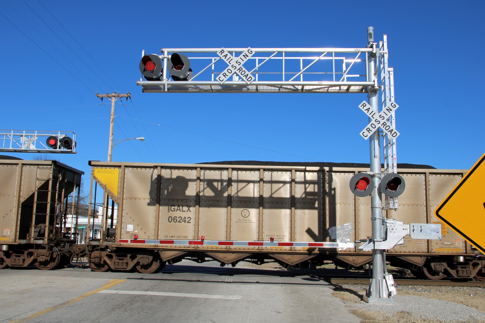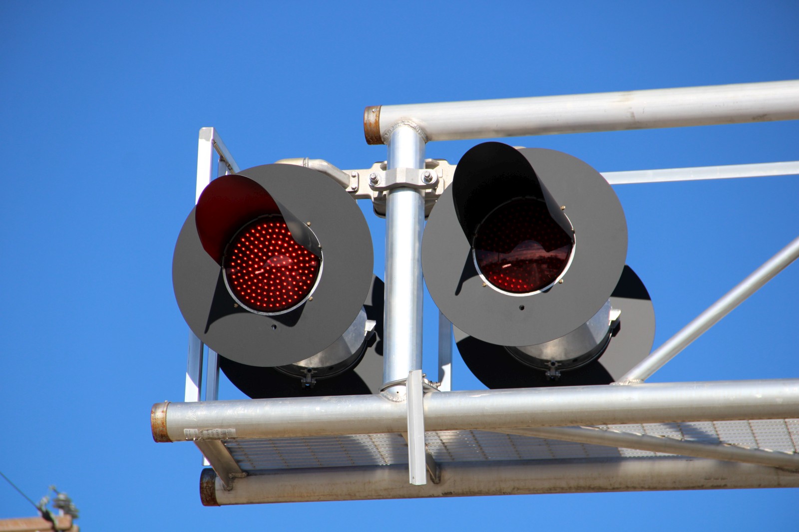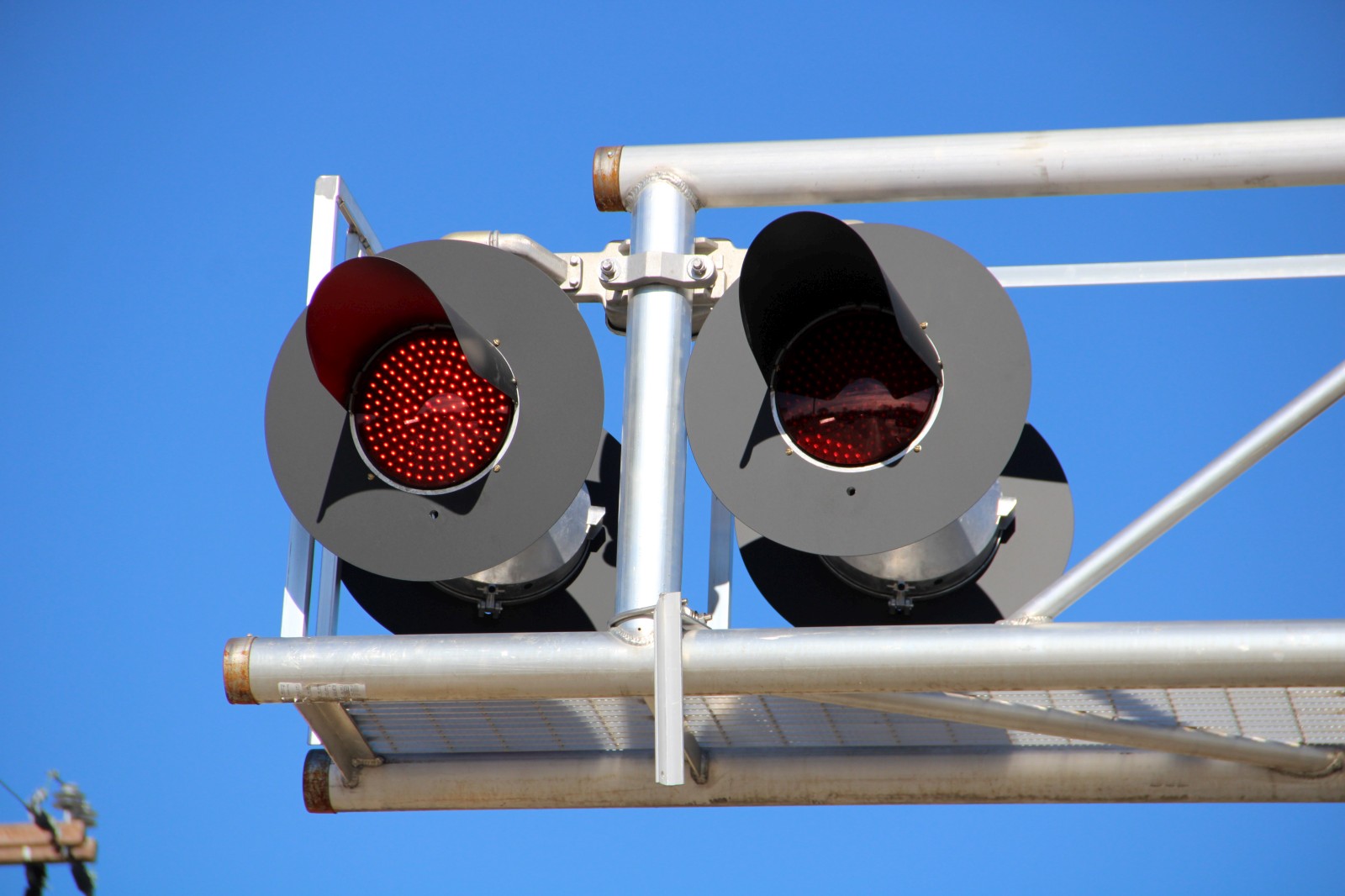 The mast lights are 12x24 inch Safetran lights with Dialight ball LEDs. |