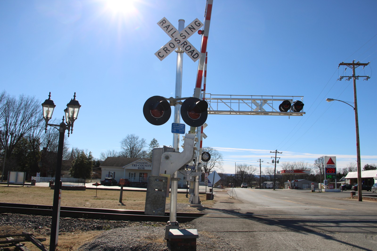 On May 28, 2022, freebrickproductions made a return trip to this crossing to find that the first signal has now gotten 4" NEG LED gatelights. |
